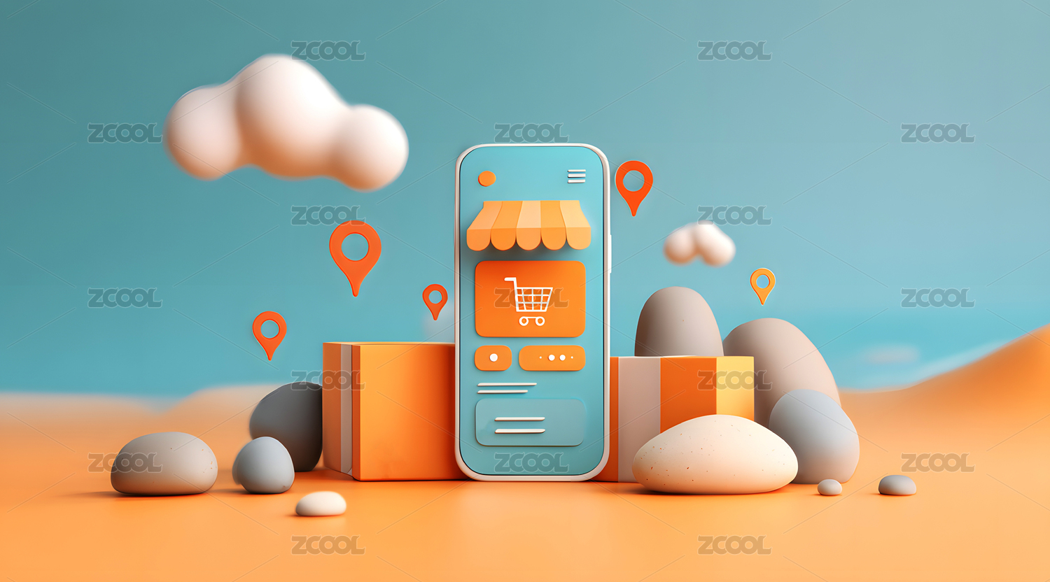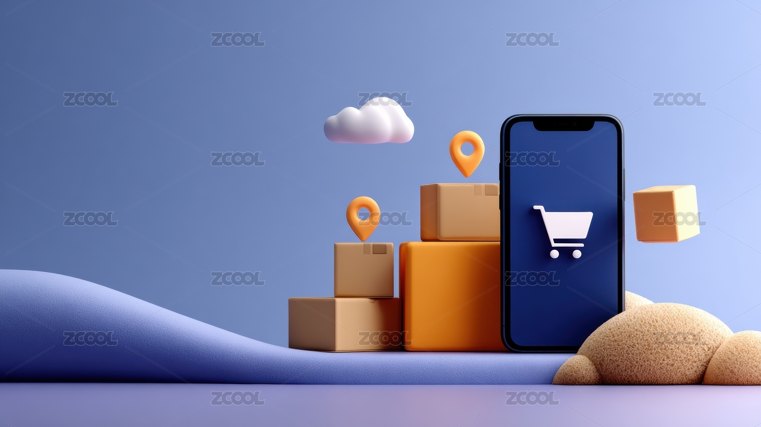 手机,包裹,快递,定位标记,云,物流,运输,配送,电子商务,移动应用