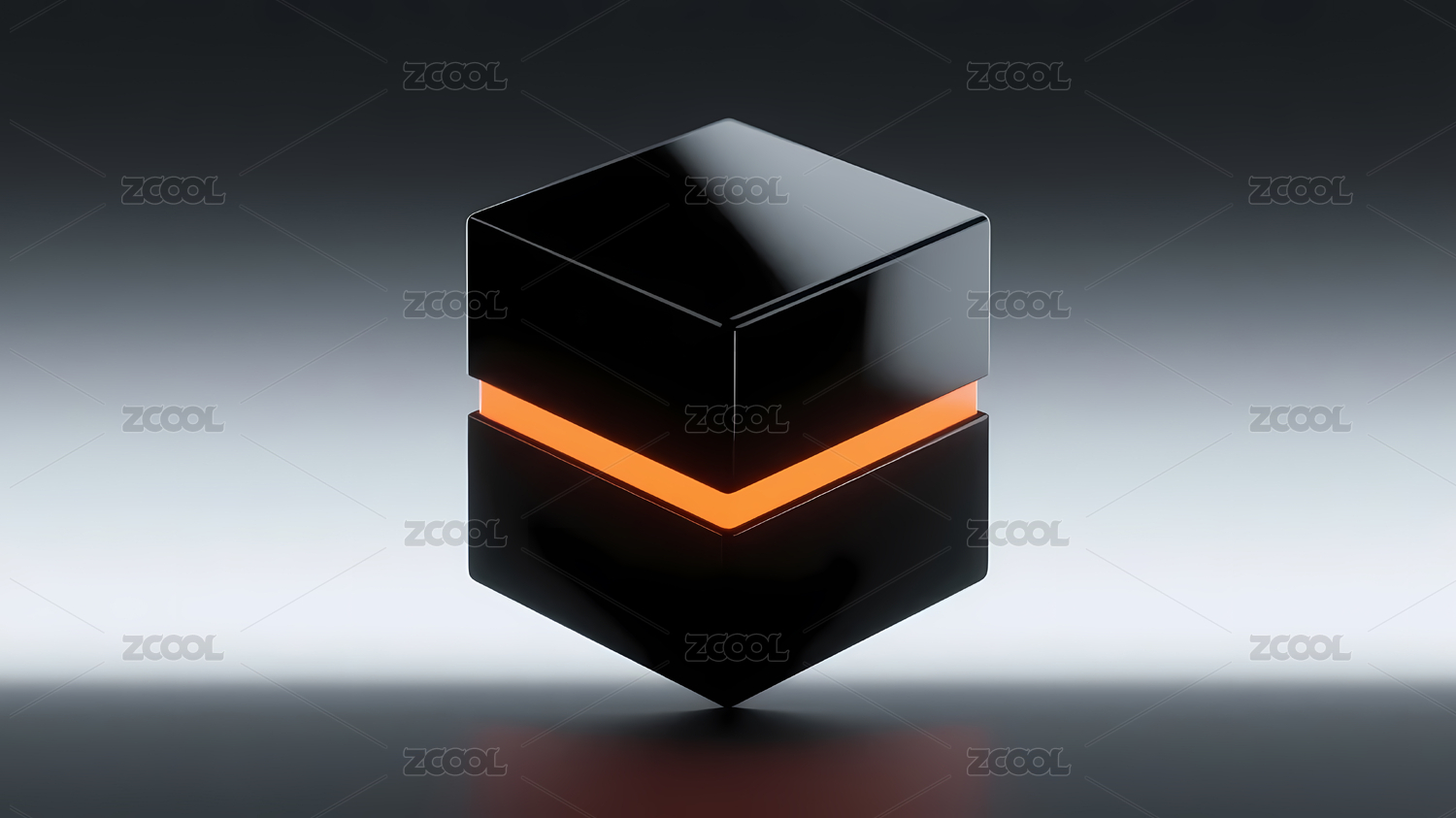 发光立方体置于黑色底座上