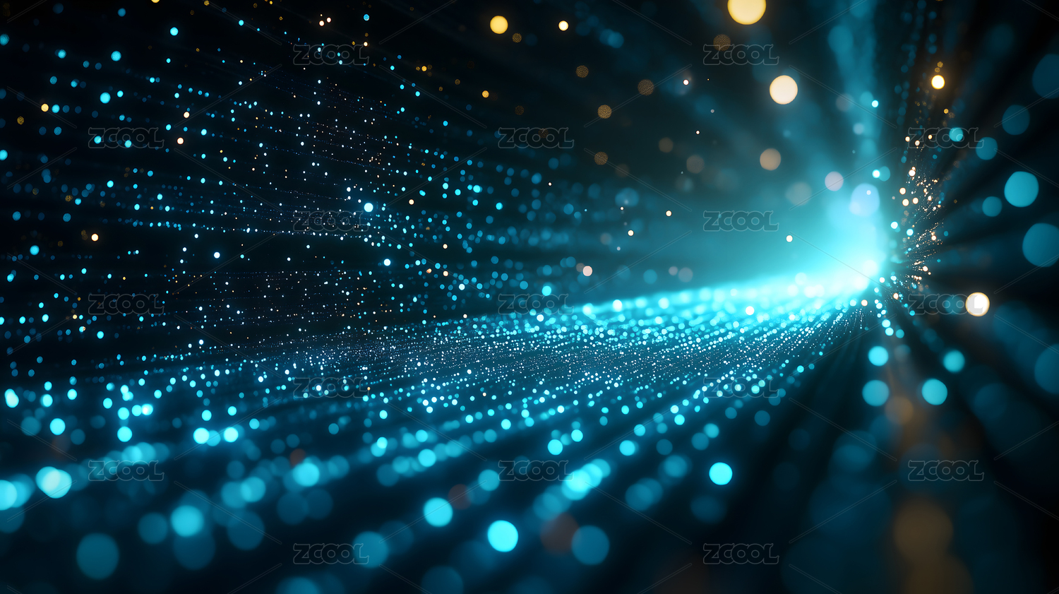 黑色背景下红蓝光线粒子交织呈现科技动感的