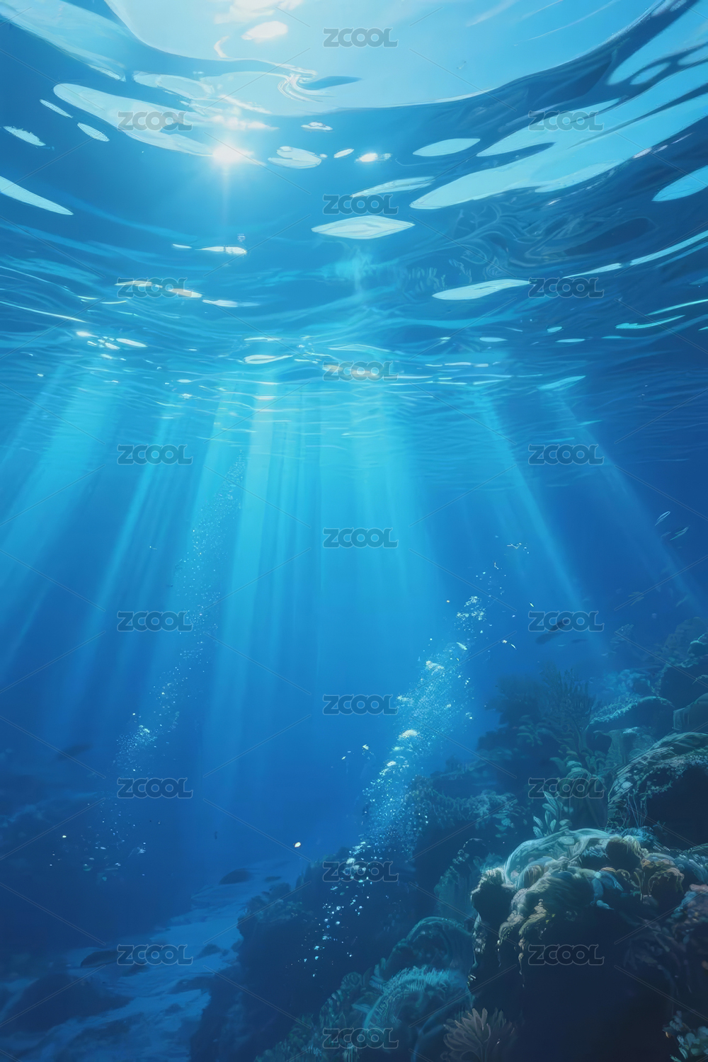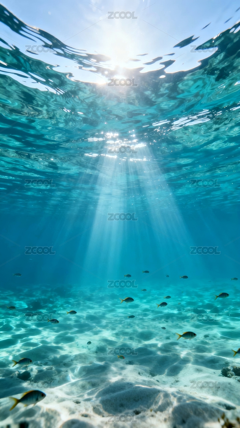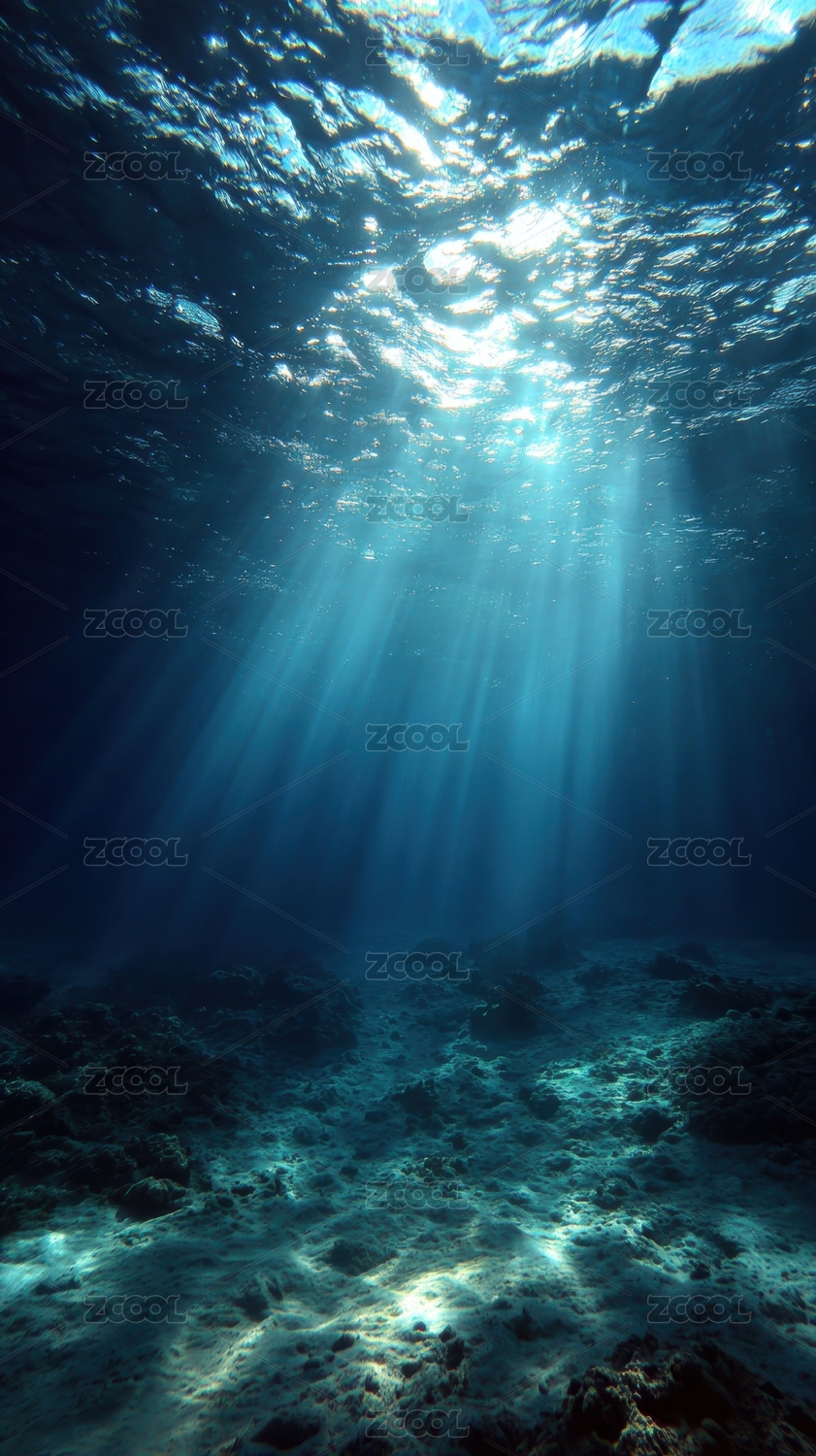 阳光下深蓝色大海海底背景