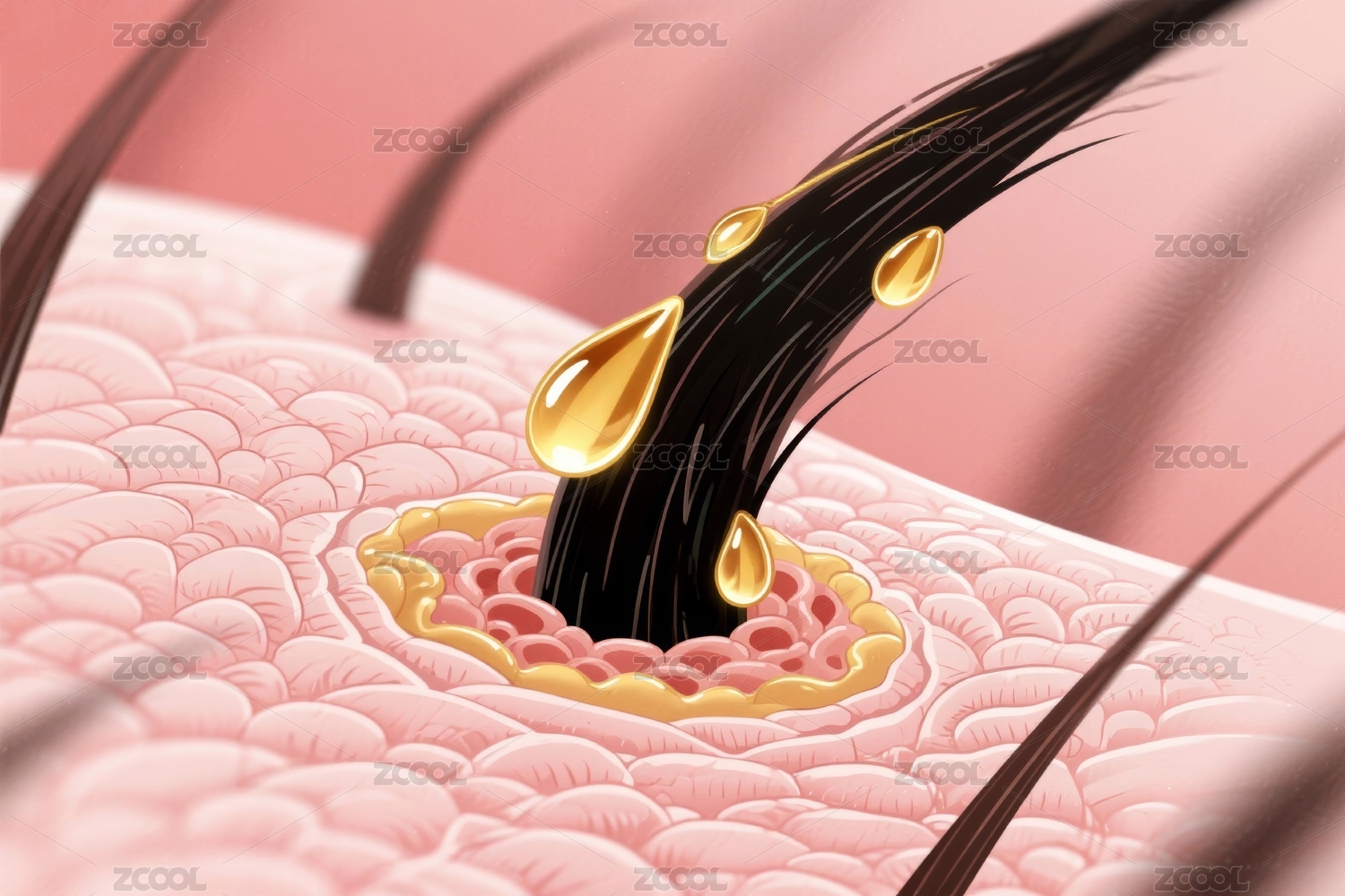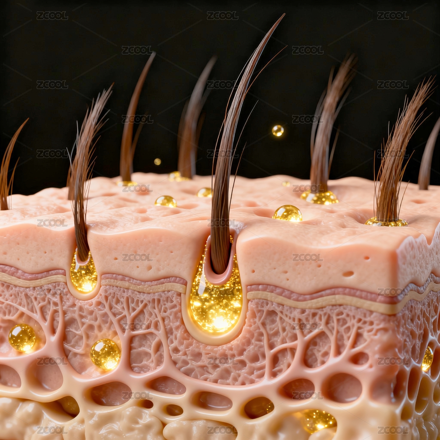 头皮毛囊立体结构美妆科普商业壁纸场景