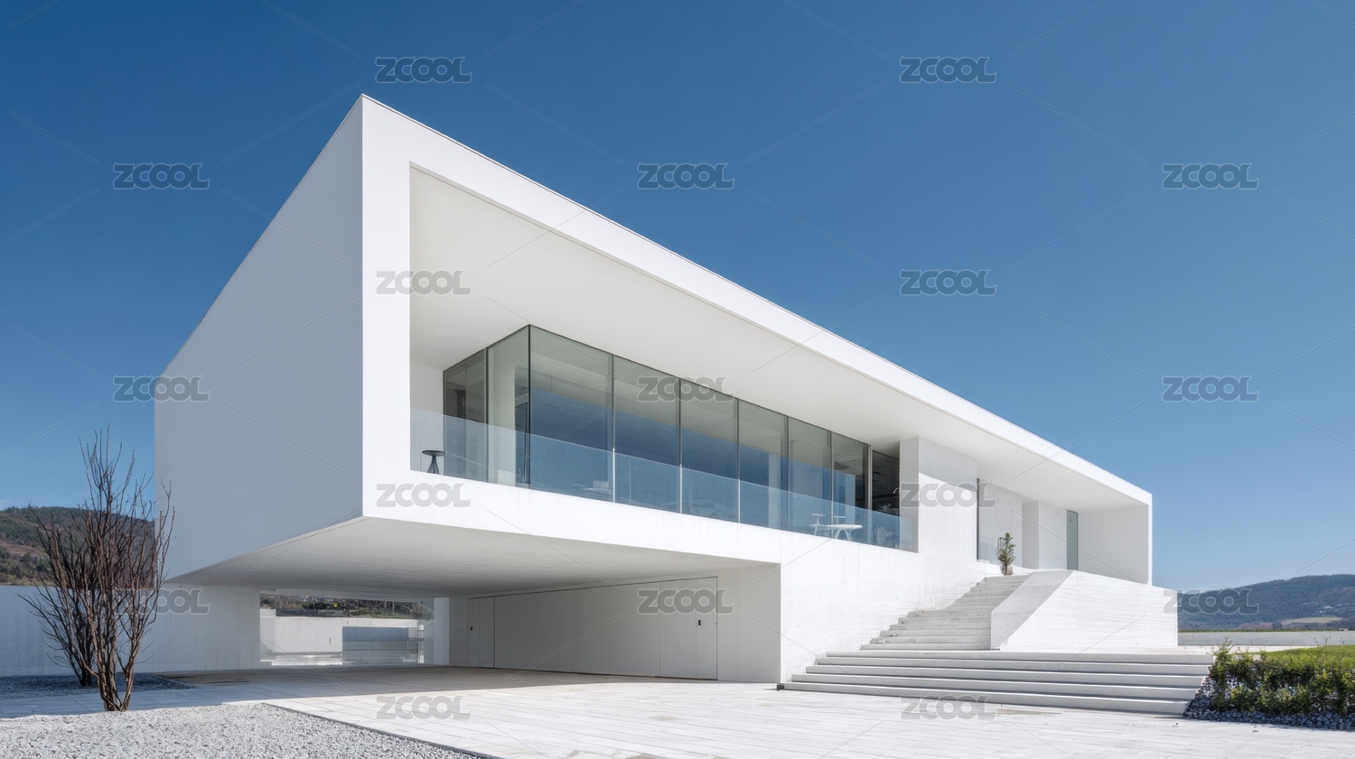现代白色建筑与自然风光