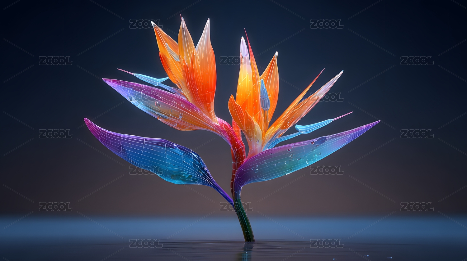 水晶天堂鸟花卉绽放黑色背景光影