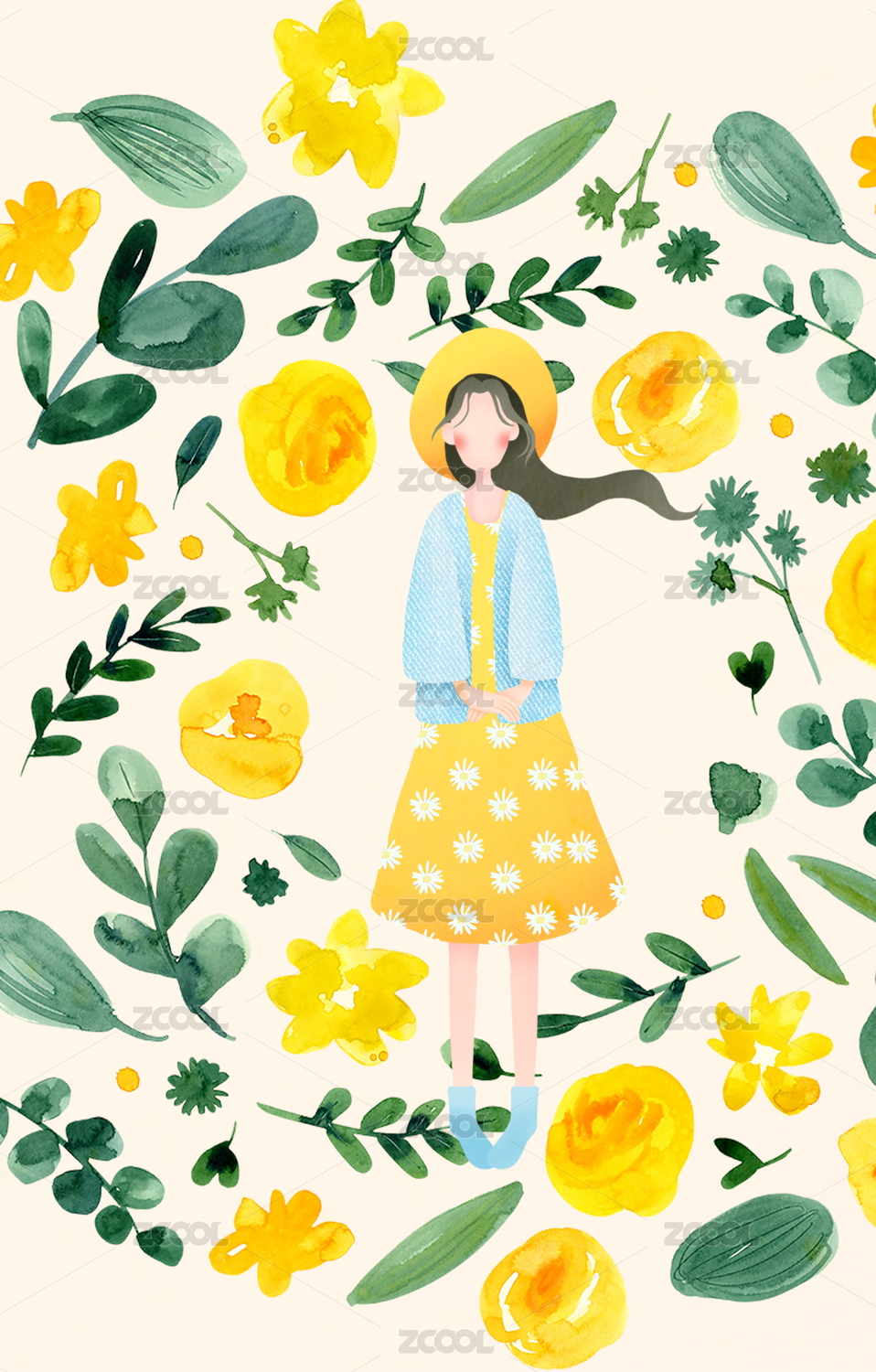 黄色,背景,绿色,设计,橙色,条纹,女孩,植物,上衣,蓝色