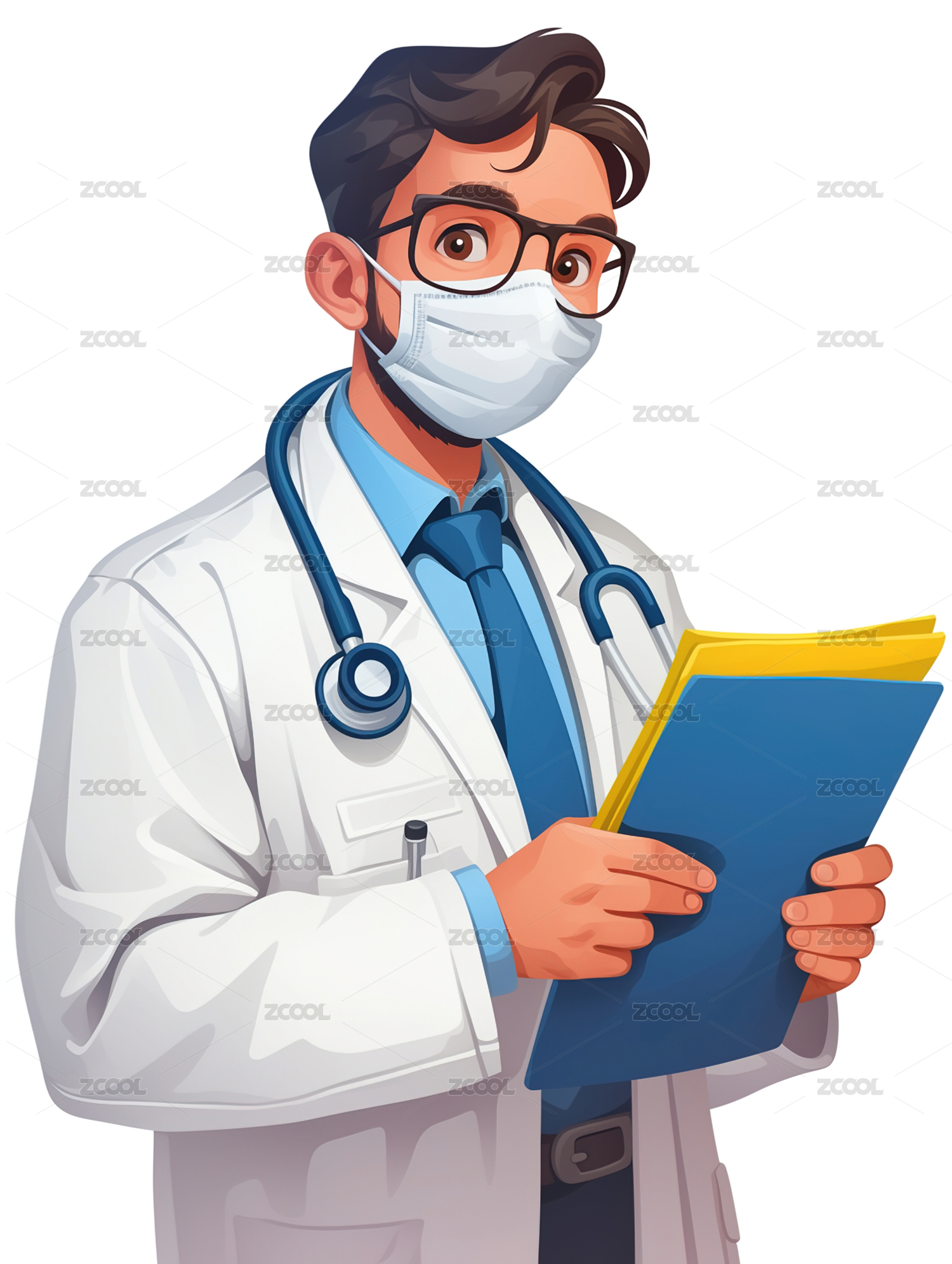 绿色,健康,手指,医生,口罩,白大褂,病历,夹板,听诊器,蓝色