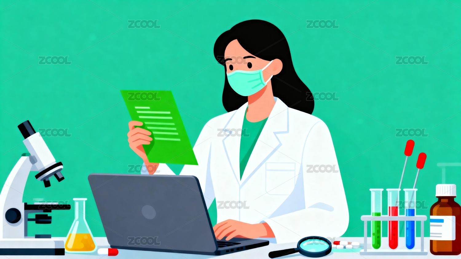 电脑,数据,分析,放大镜,医疗,实验室,药品,药瓶,记录,口罩