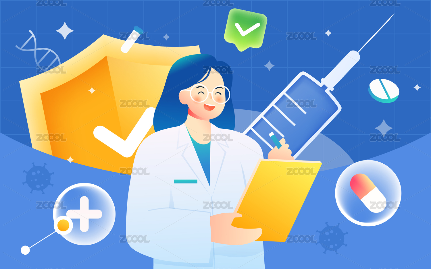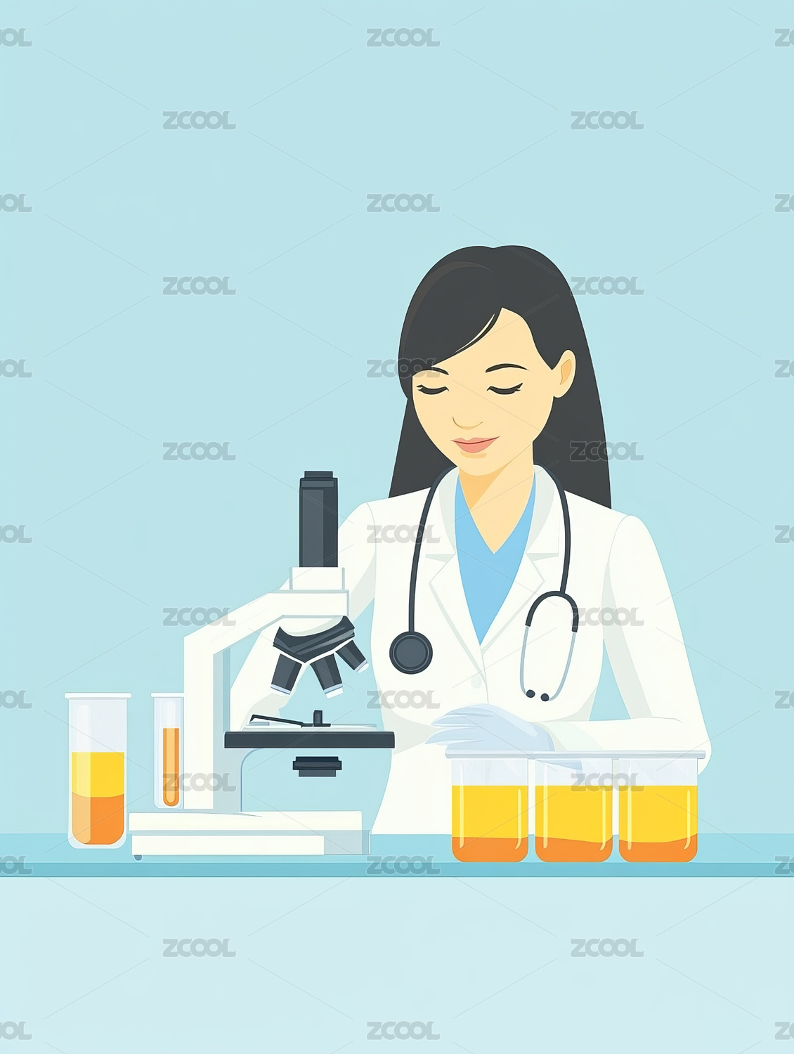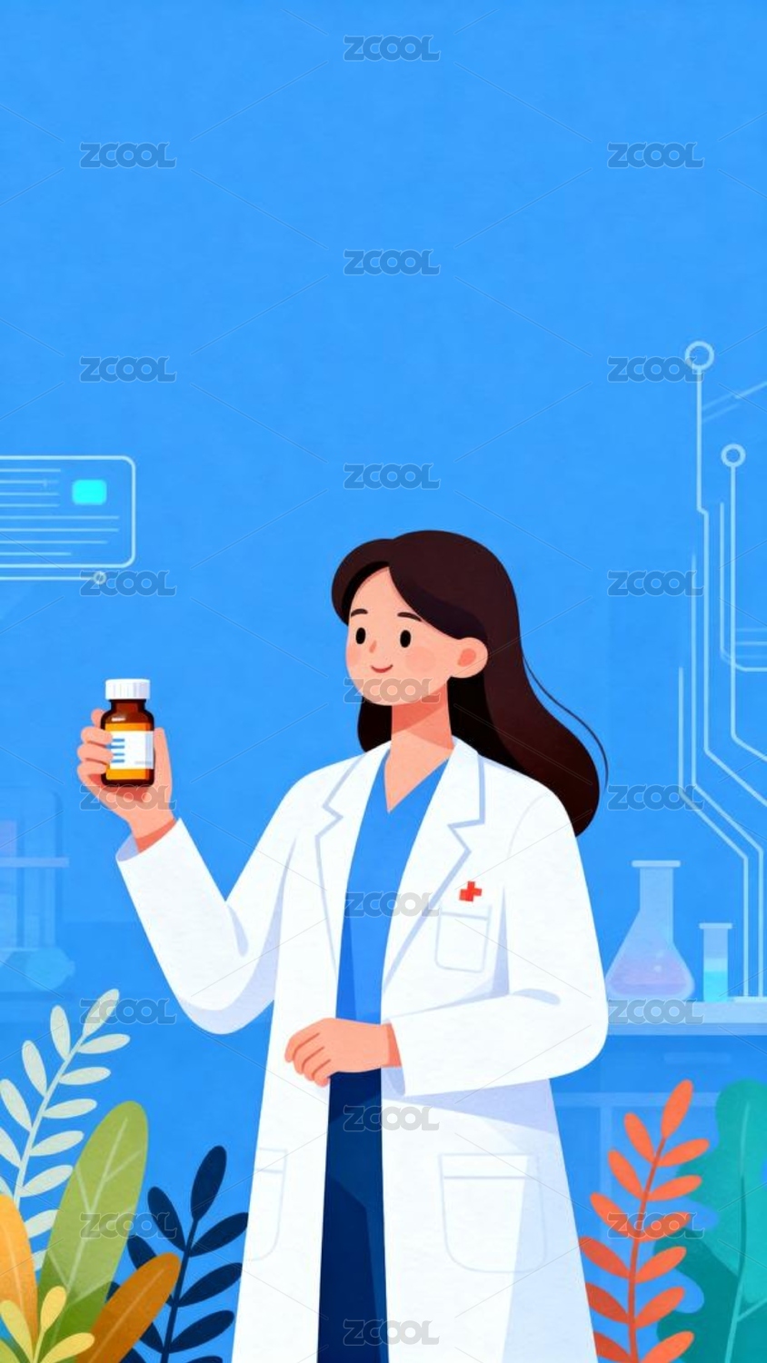 蓝色医生医疗实验插画