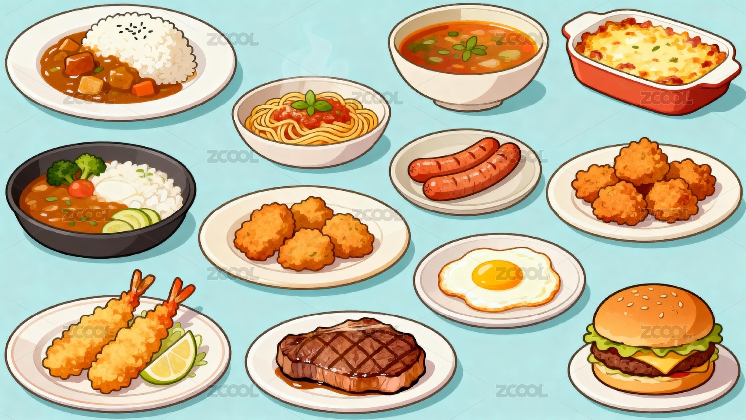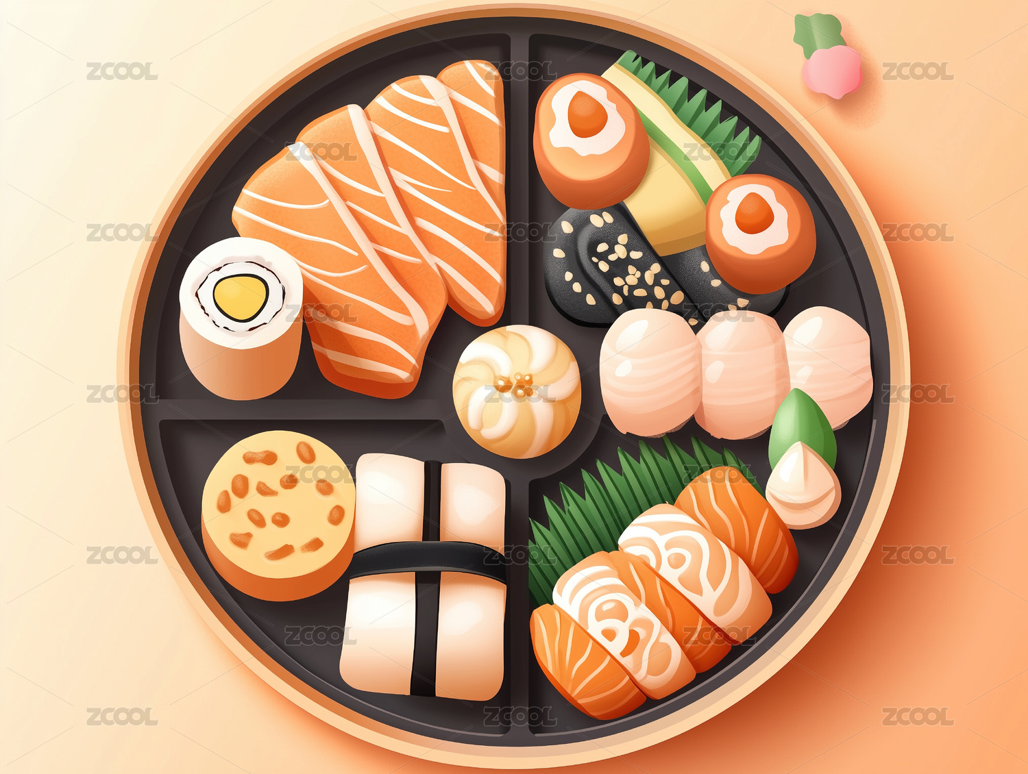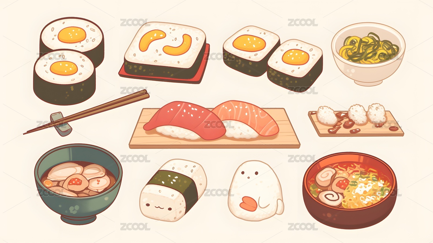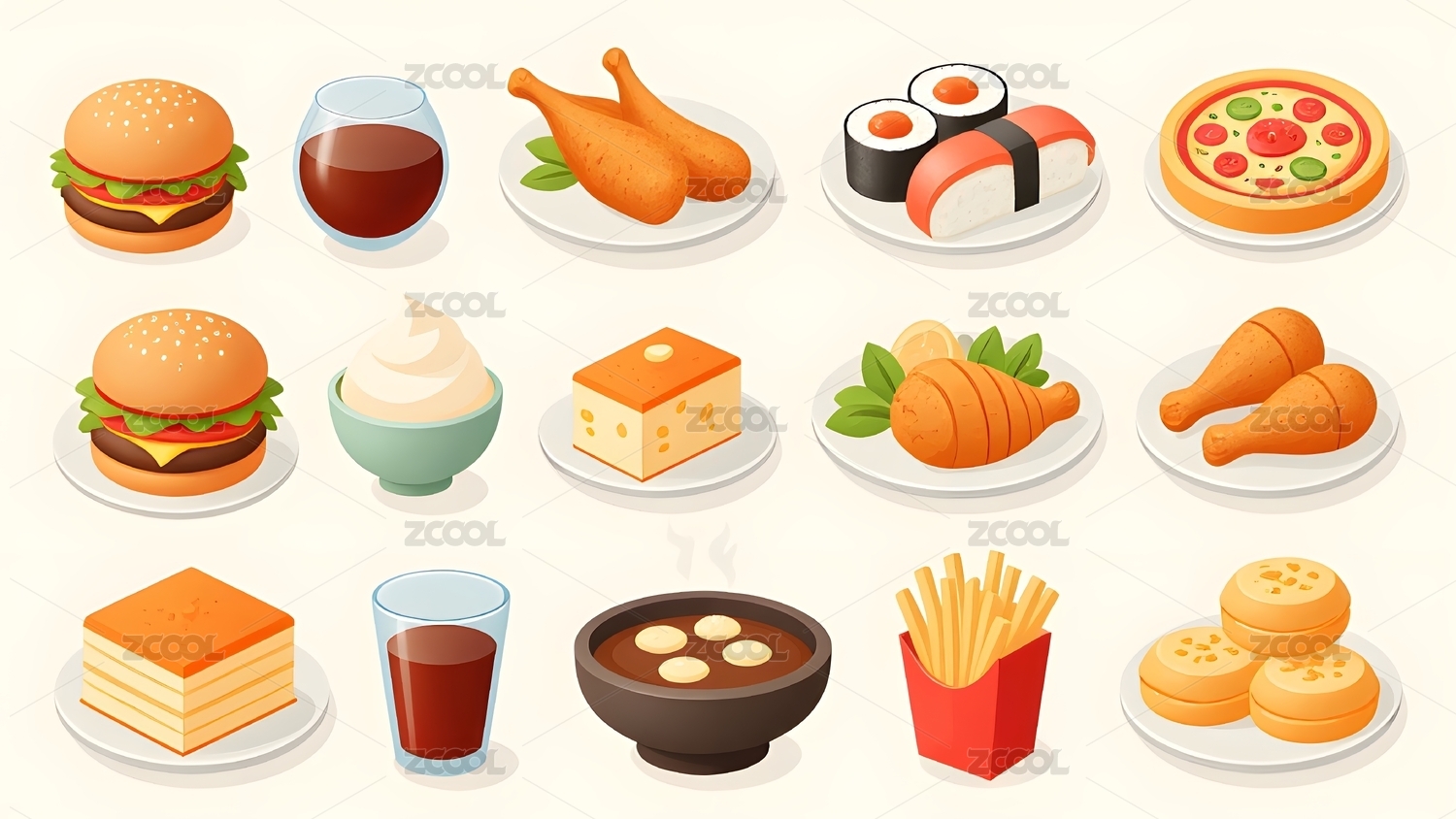食物,饮料,鸡蛋,午餐,晚餐,寿司,炸鸡,汉堡,可乐,面条