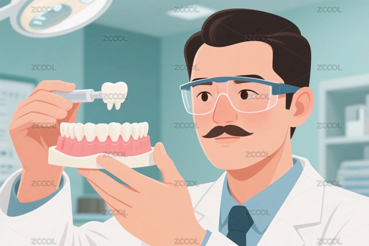 扁平风格可爱的医生给牙齿检查 国际爱牙日插画人物元素