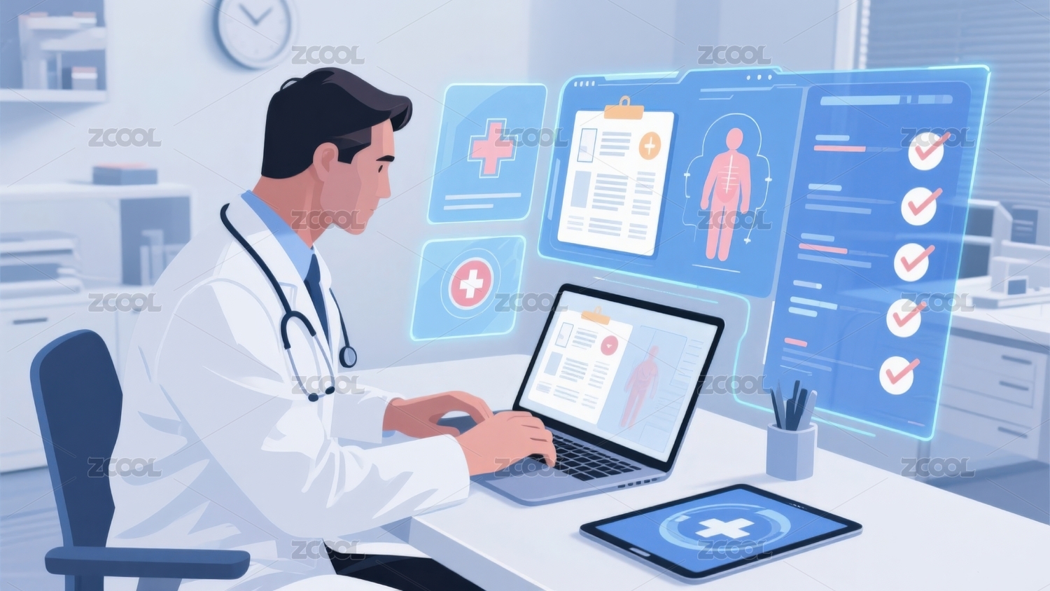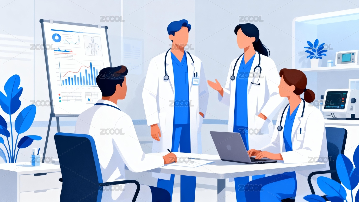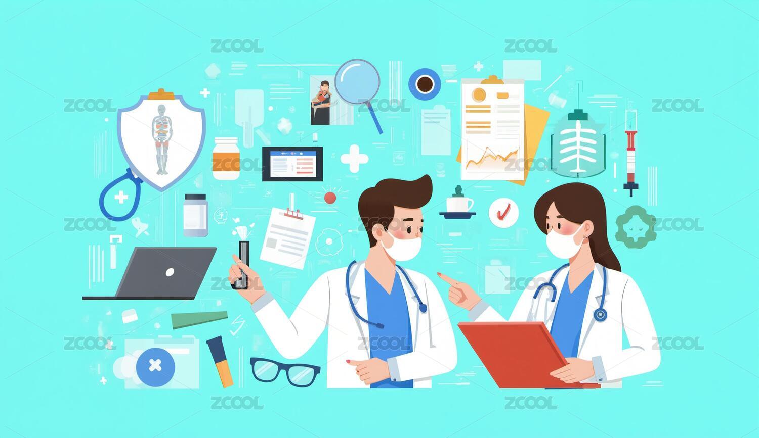 蓝色小清新医疗医生诊断扁平风矢量医学元素