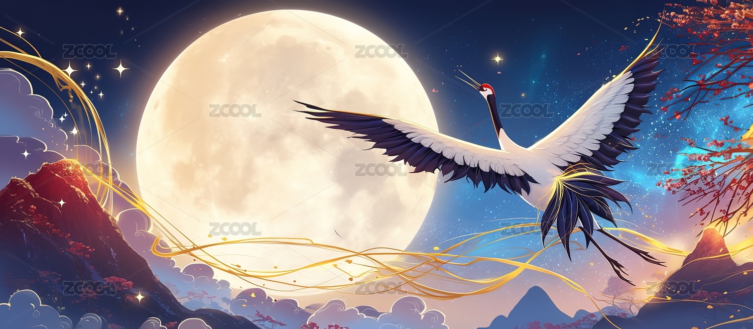 重阳节主题背景仙鹤丹顶鹤中国风国画工笔画