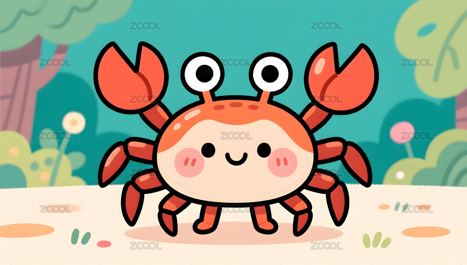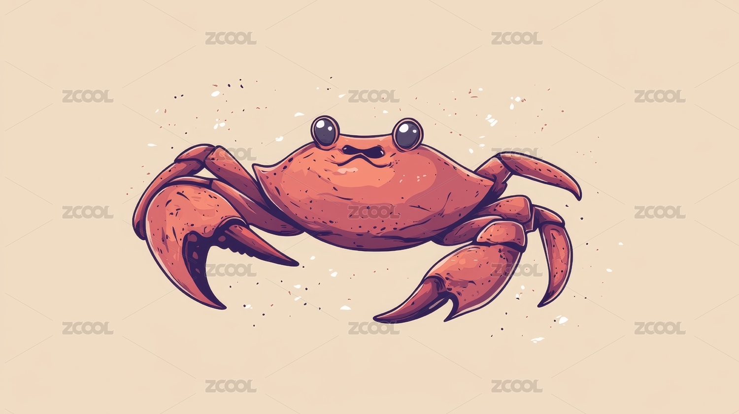 螃蟹,卡通,插画,矢量,模板,海洋,生物,可爱,蜷曲,线条