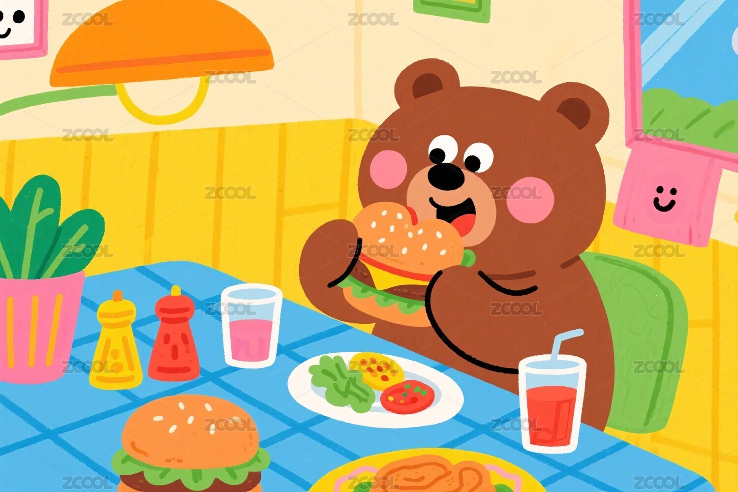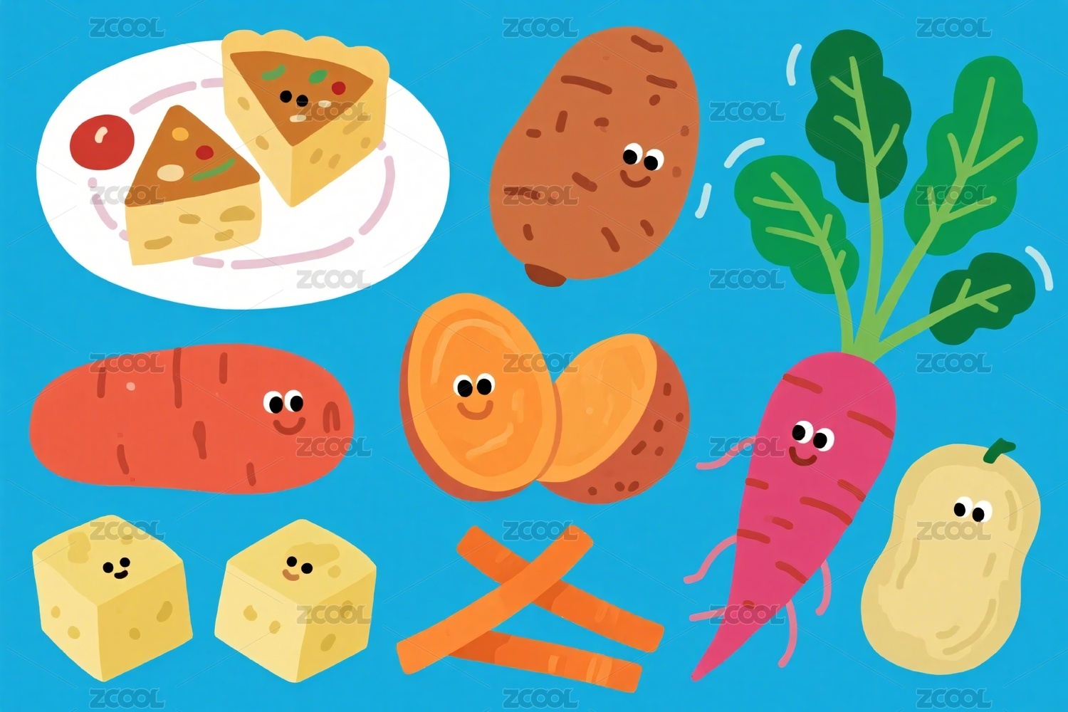 卡通,儿童,餐盘,插画,动物,头像,面包,蔬菜,水果,可爱