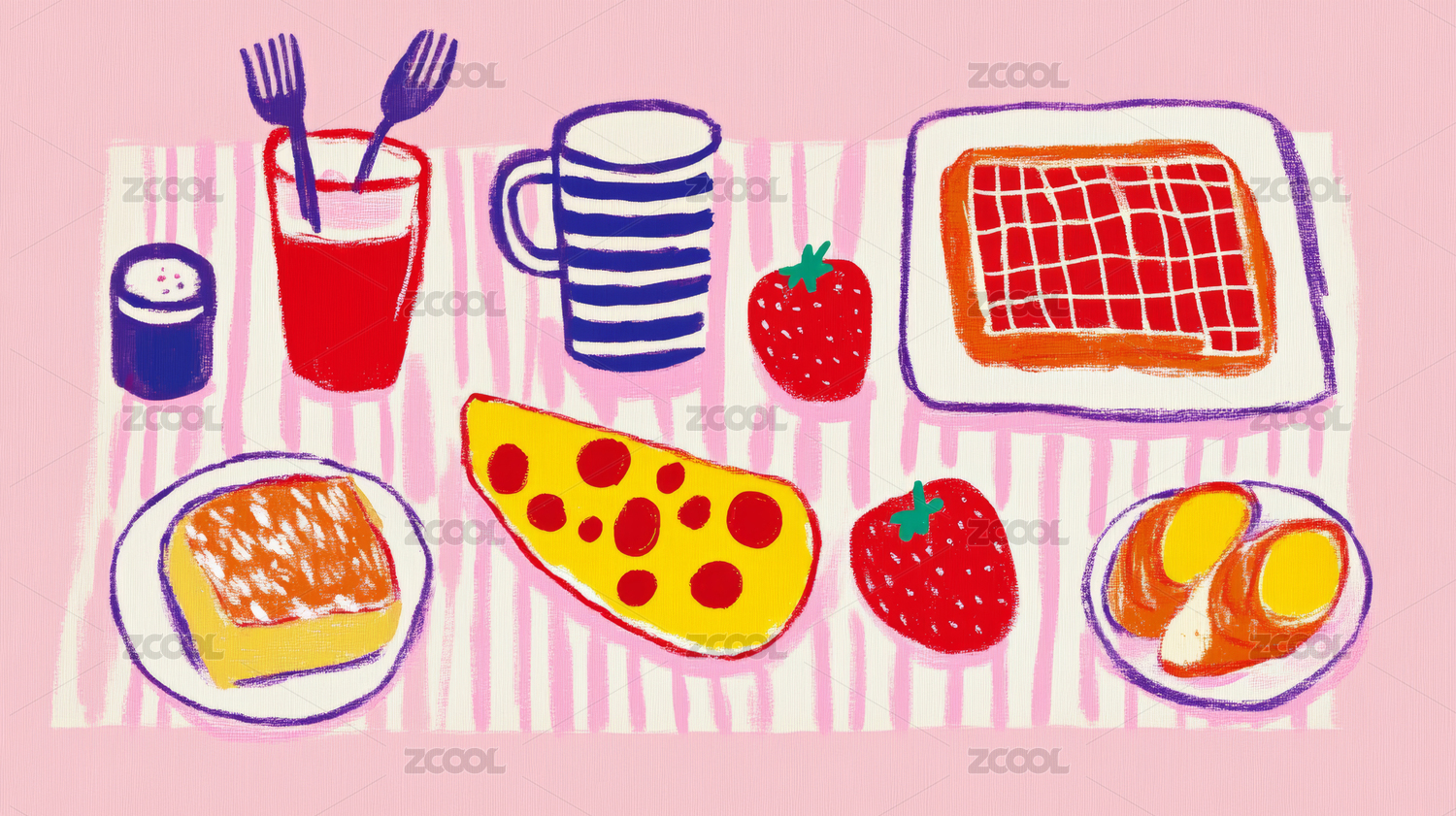 健康早餐美食沙拉俯视图健身餐鸡蛋面包插画