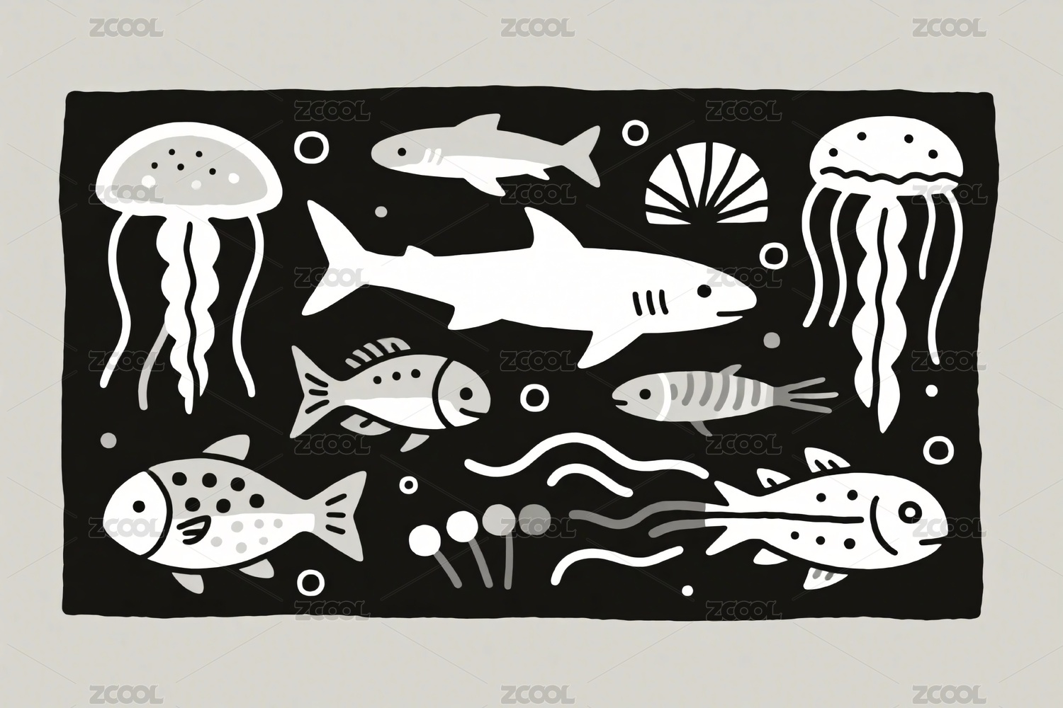 鱼类,海草,珊瑚,卡通,插画,海洋,生物,动物,水生,水族