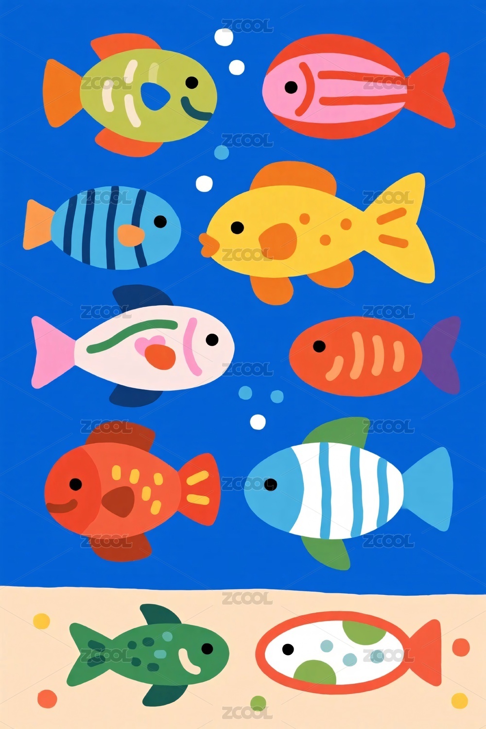 卡通,海洋,插画,矢量,模板,小鱼,海草,水下,生物,装饰
