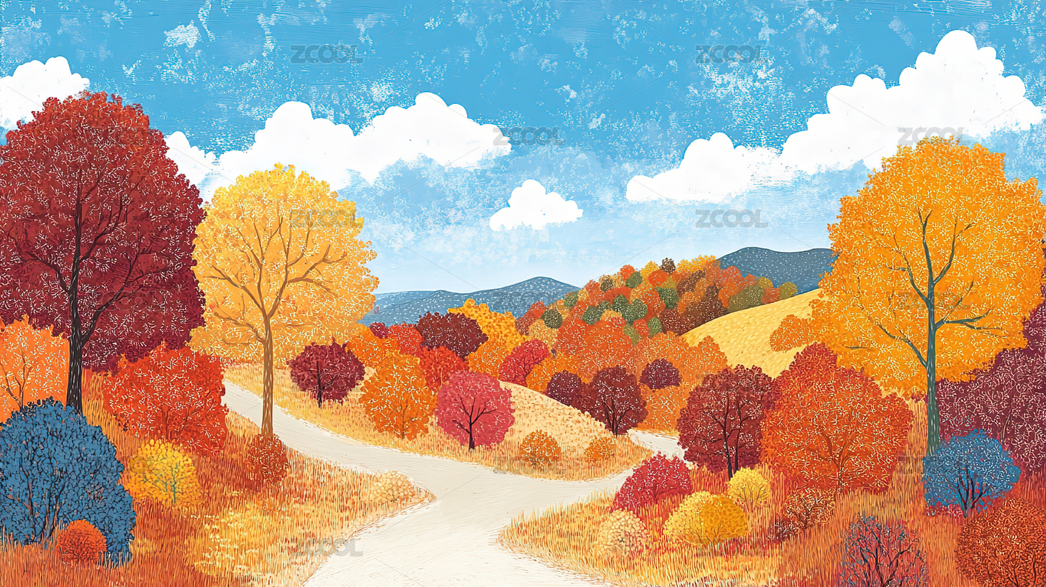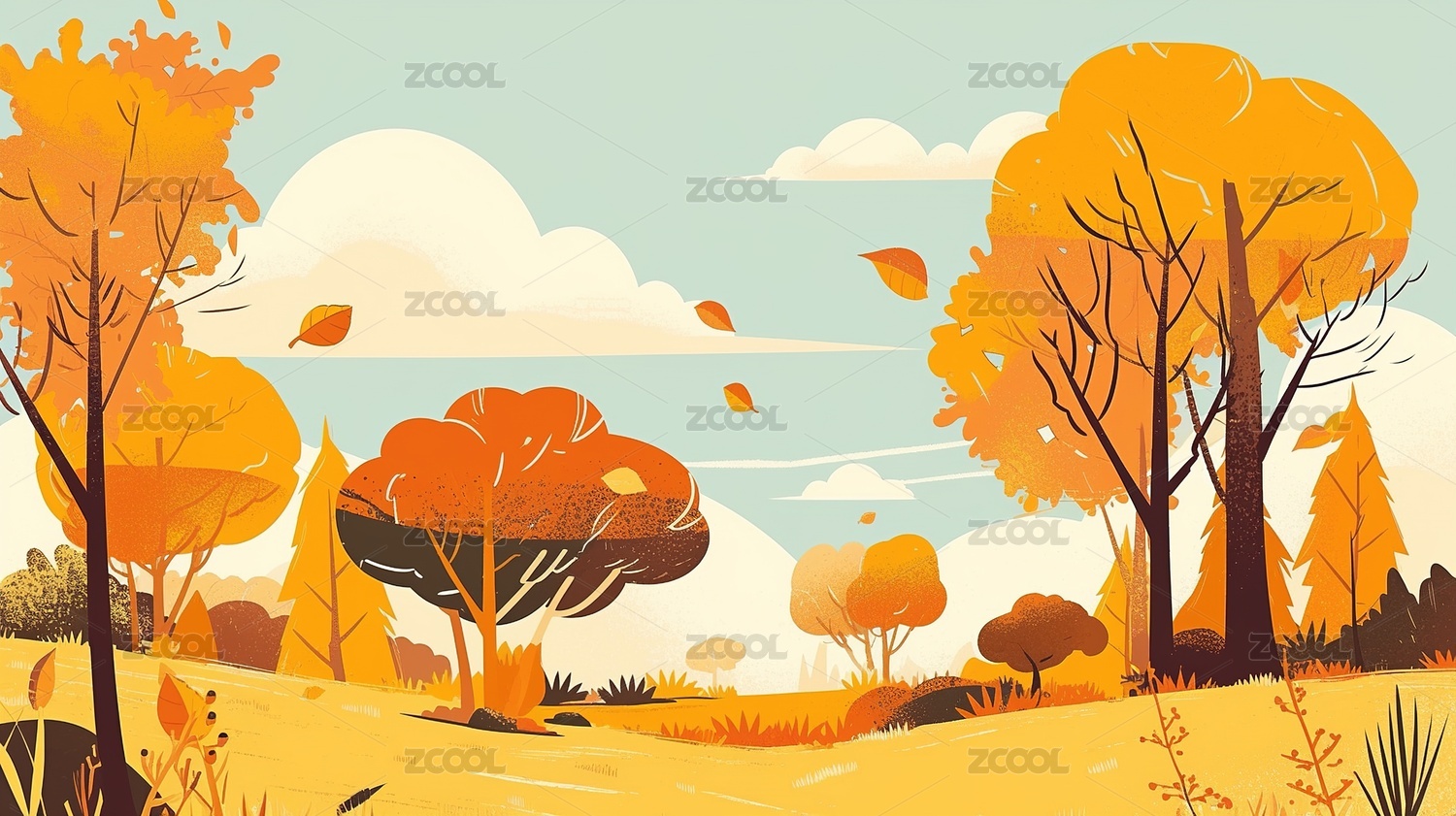 秋季风景插画扁平风格