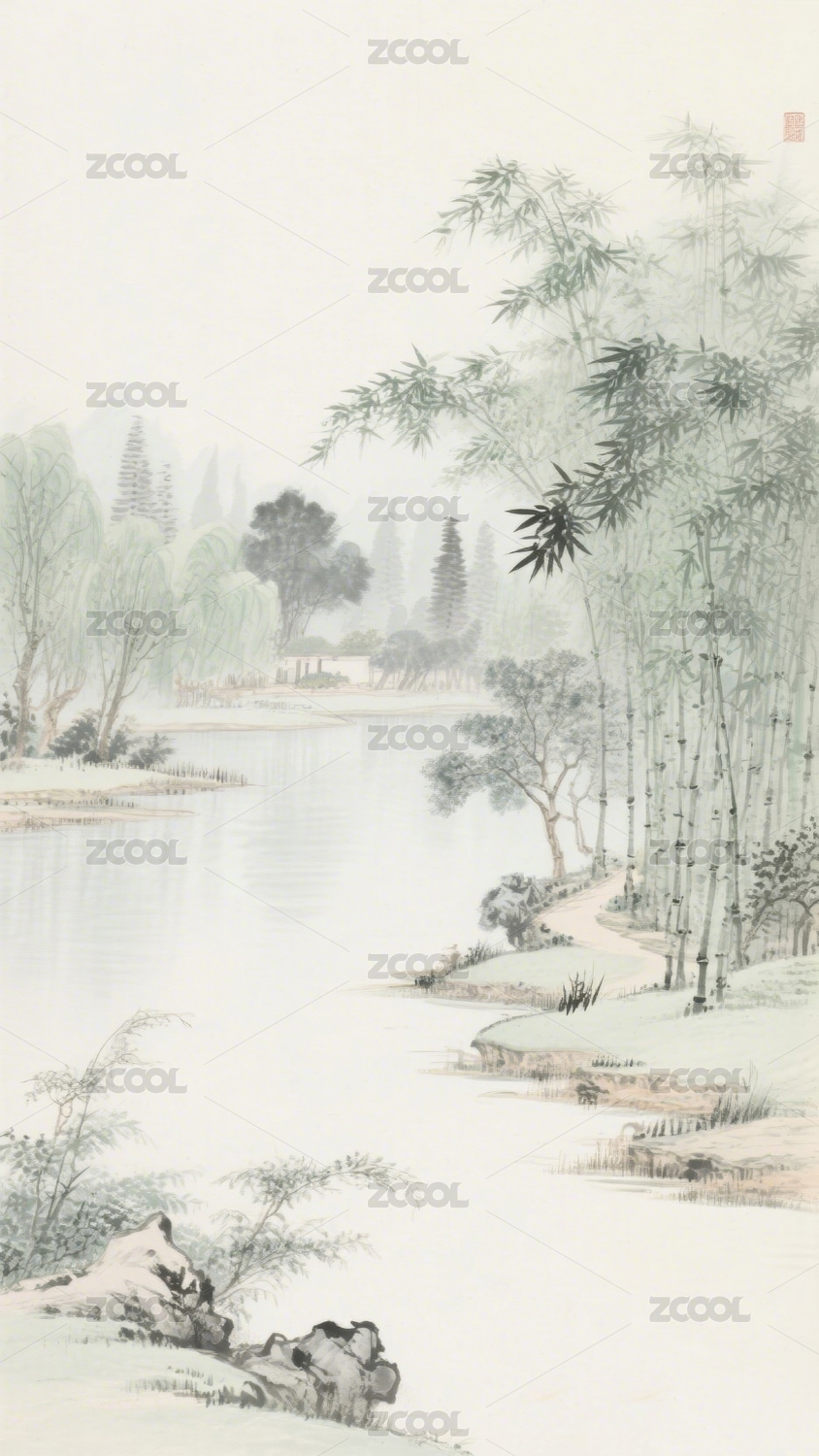 水墨竹林插画