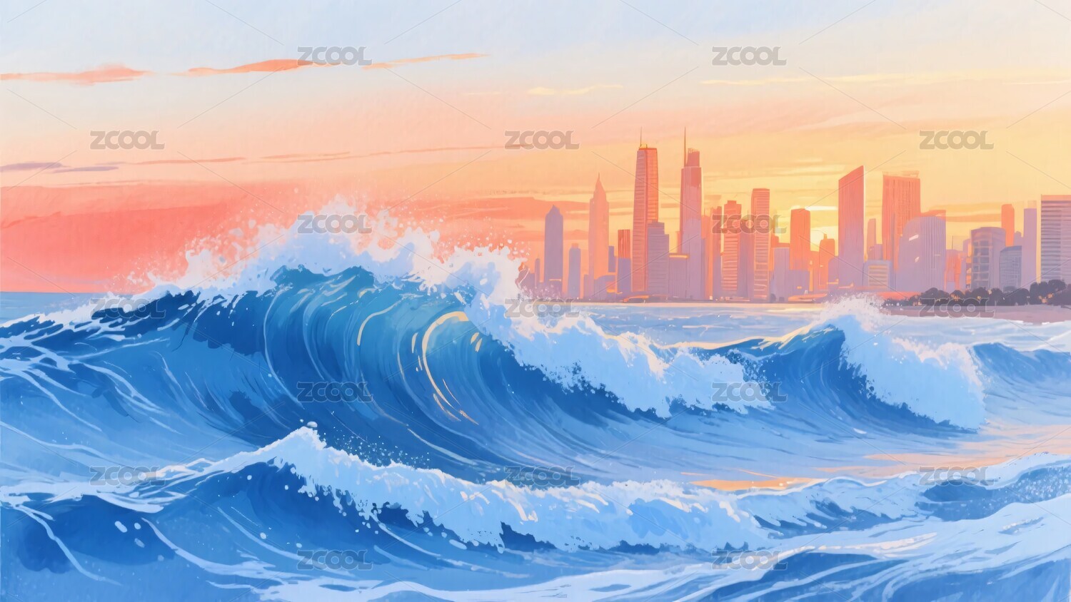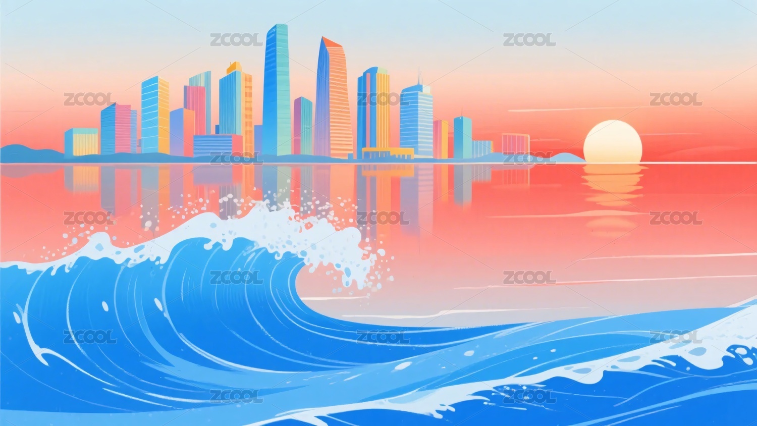 蓝色,建筑,线条,环境,城市,高楼,天际线,海洋,海浪,水面