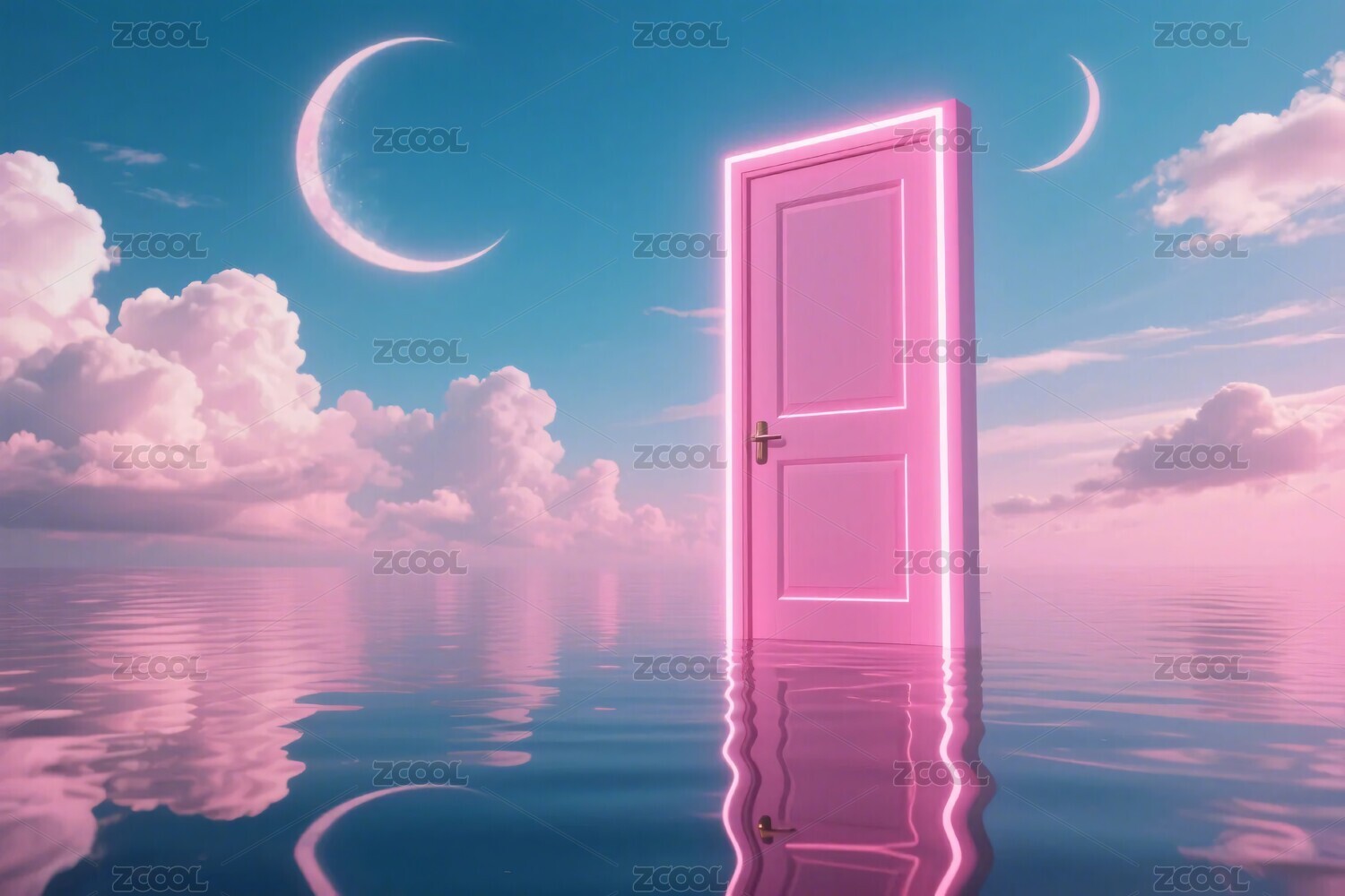 月亮,天空,云朵,倒影,梦幻,创意,艺术,插画,风景,童话