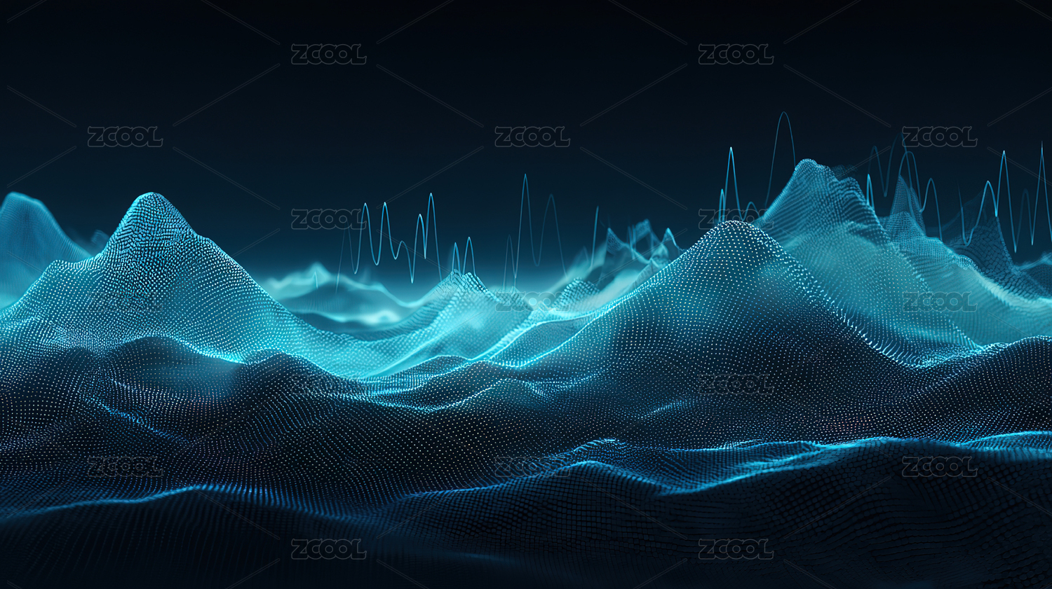 抽象蓝色数字山脉景观