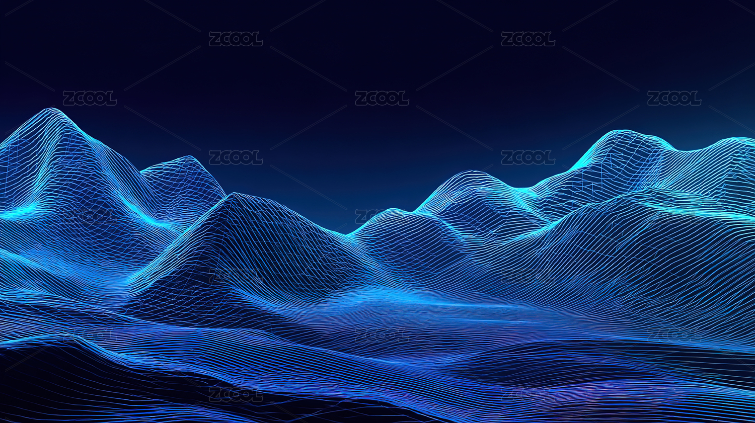 蓝色光波山峦夜景