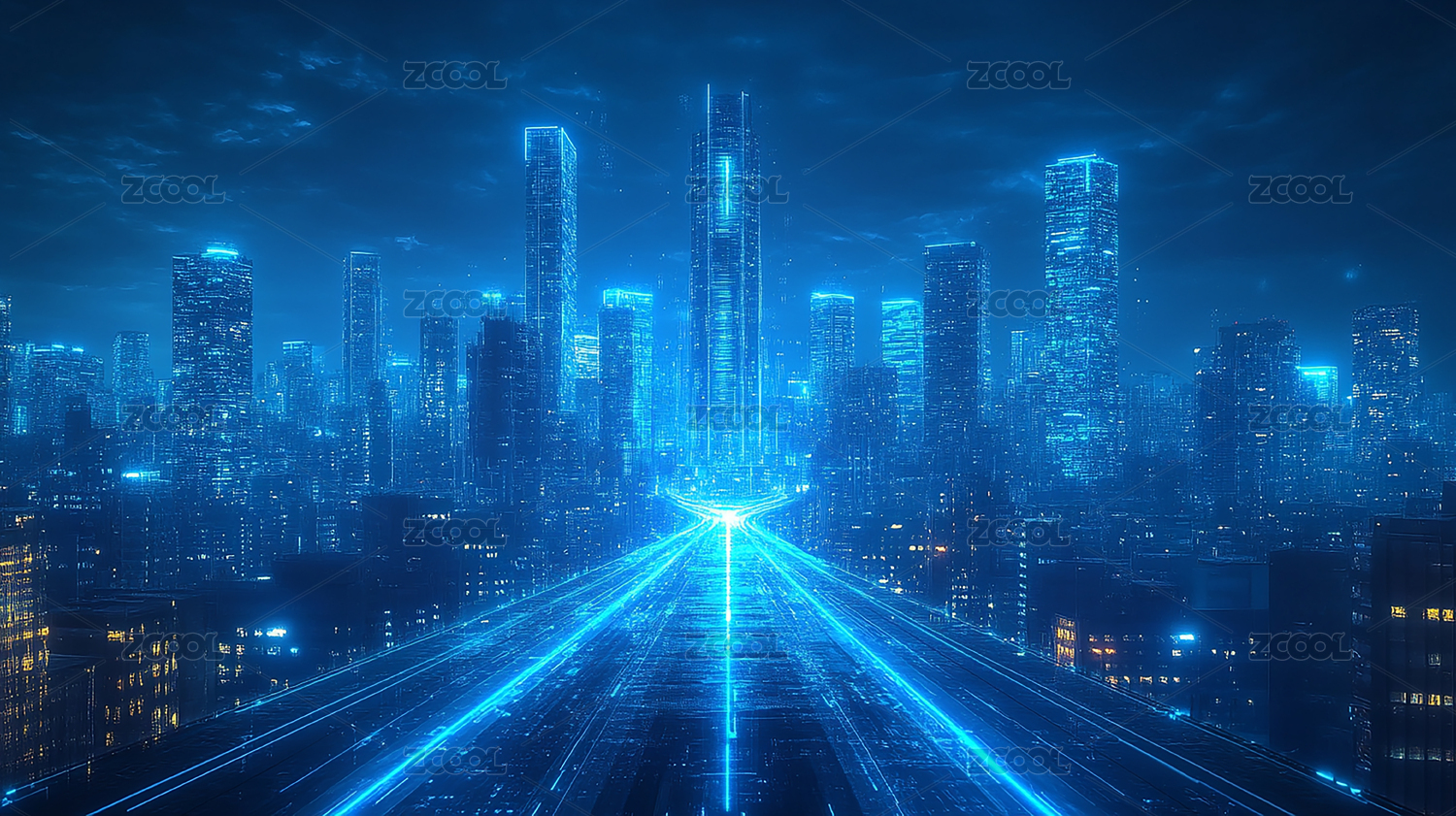未来城市夜景光束