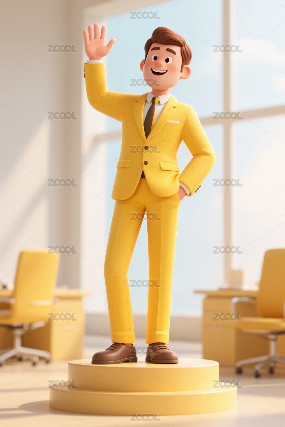 卡通人物,黄色西装,卡通角色,欢呼,微笑,动画,插画,矢量,立体,商务