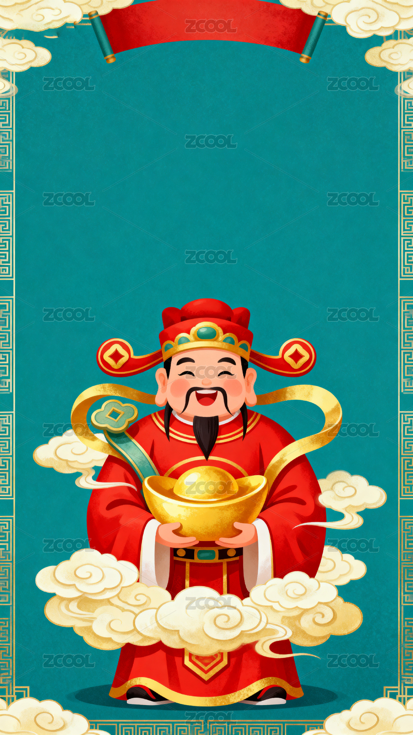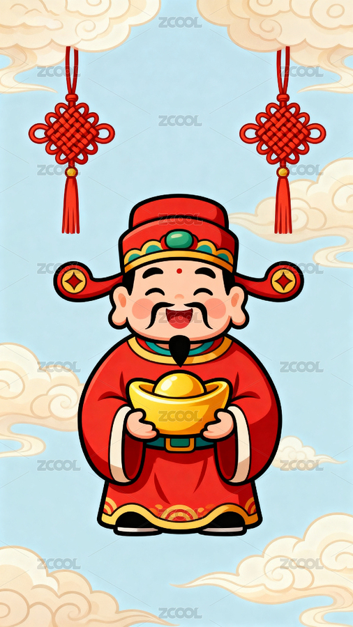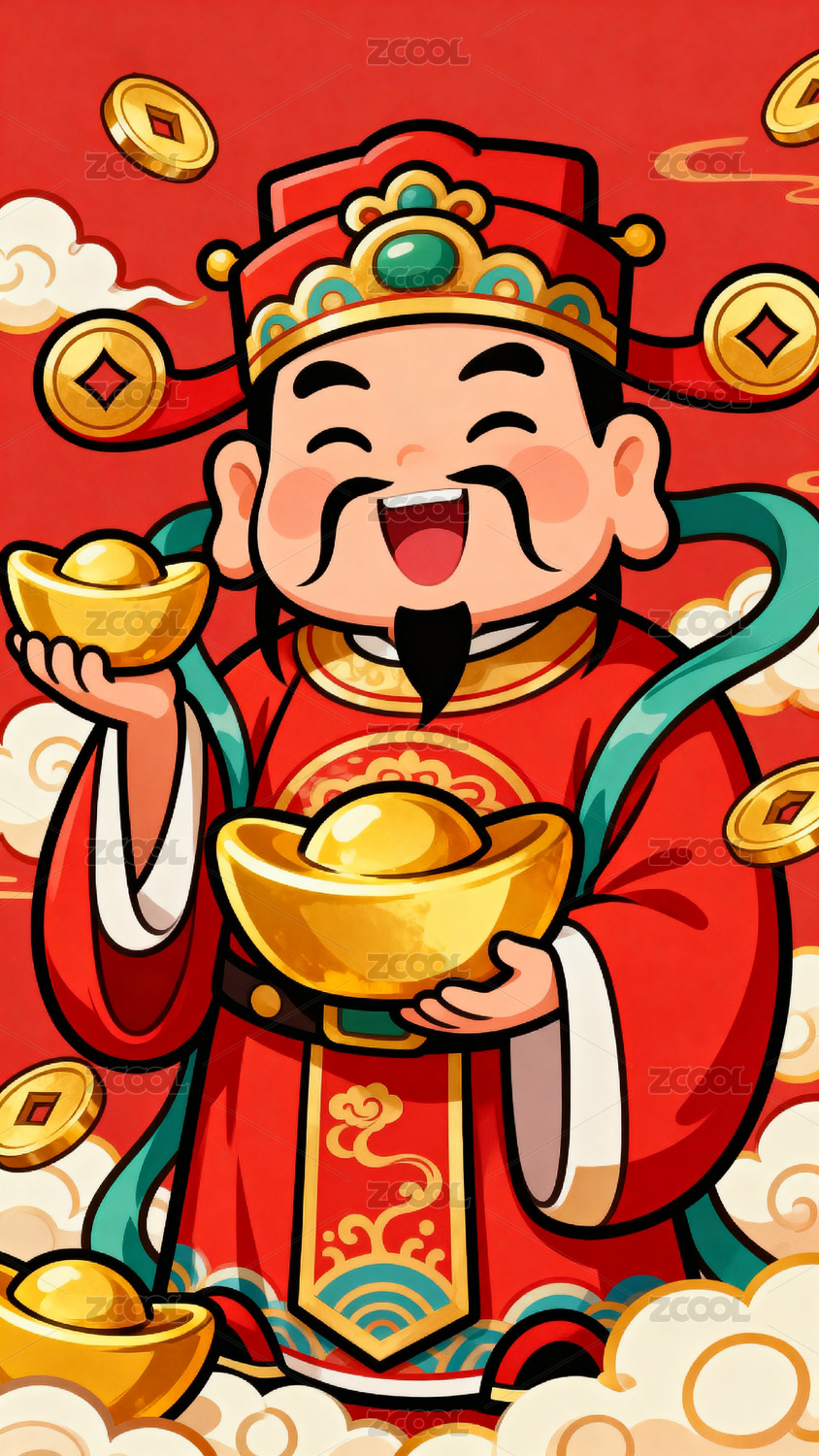 财神,帽子,金色,笑脸,传统,服饰,卡通,喜庆,红色,元宝