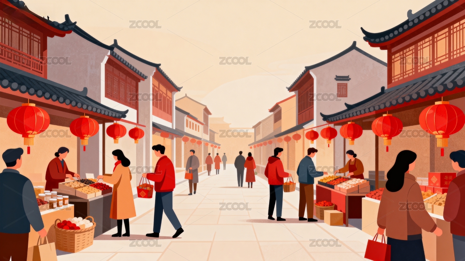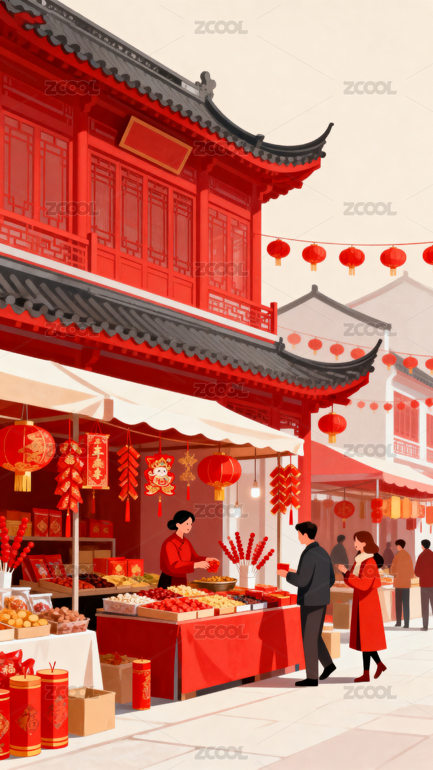 春节集市红灯笼年货街