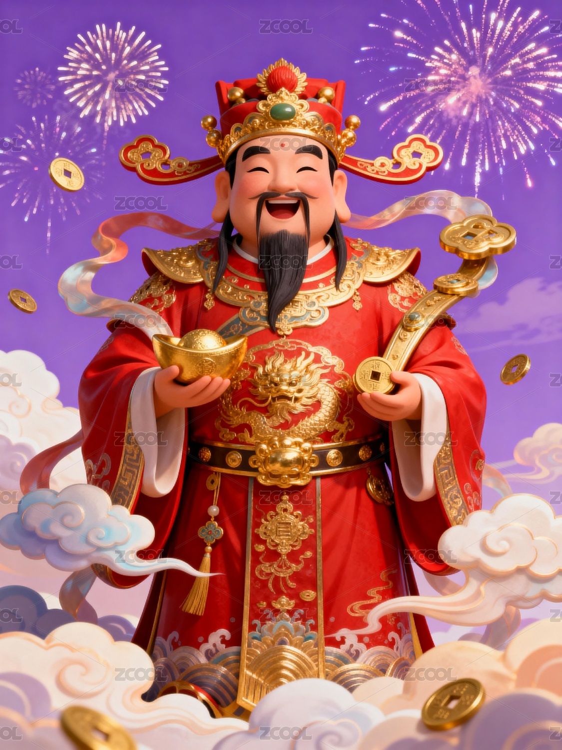 红包,装饰,红色,金币,传统,铜钱,云朵,服饰,笑脸,财神