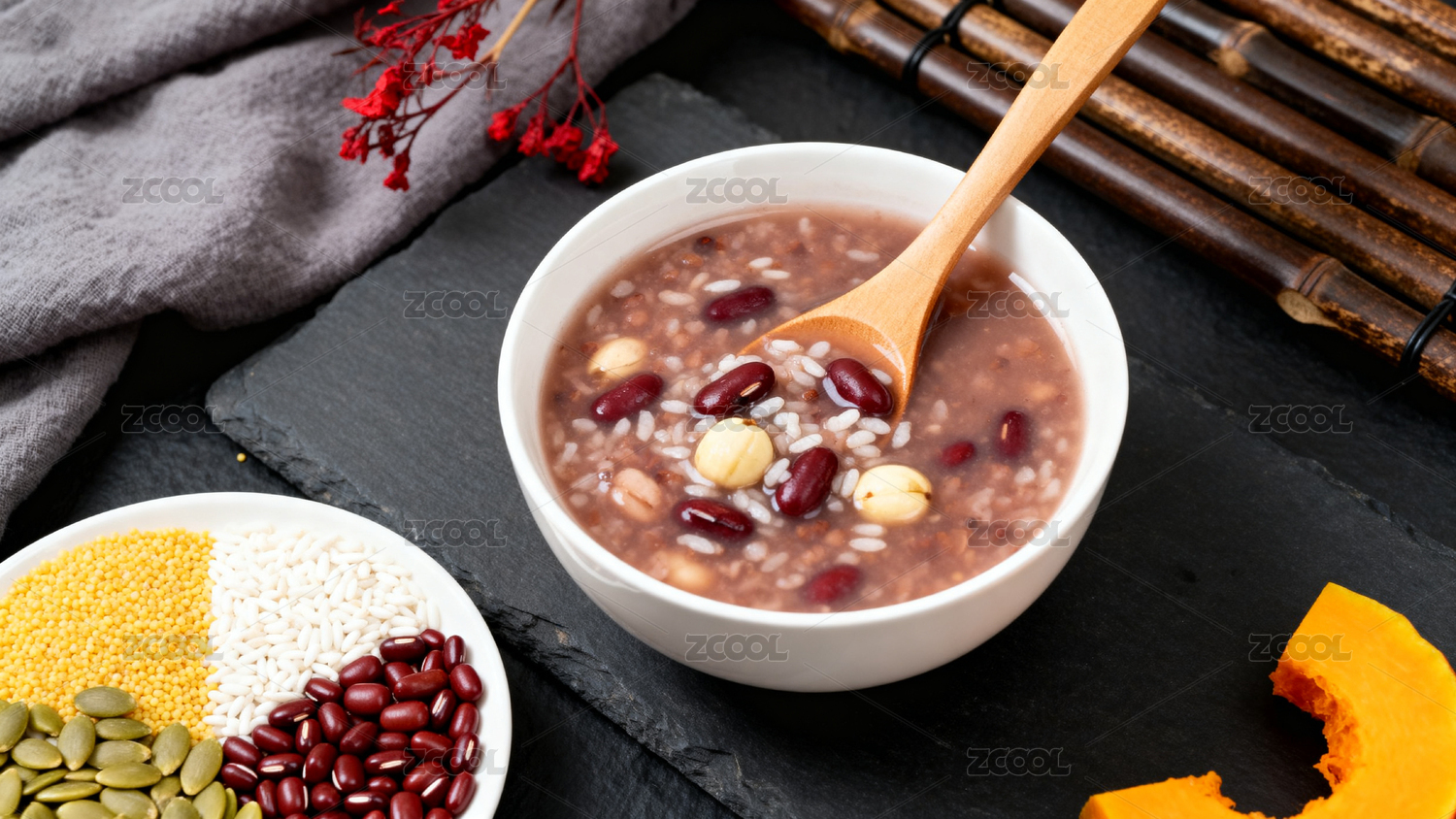 红色,蓝色,背景,碗,白色,图案,绿色,食材,花生,红豆