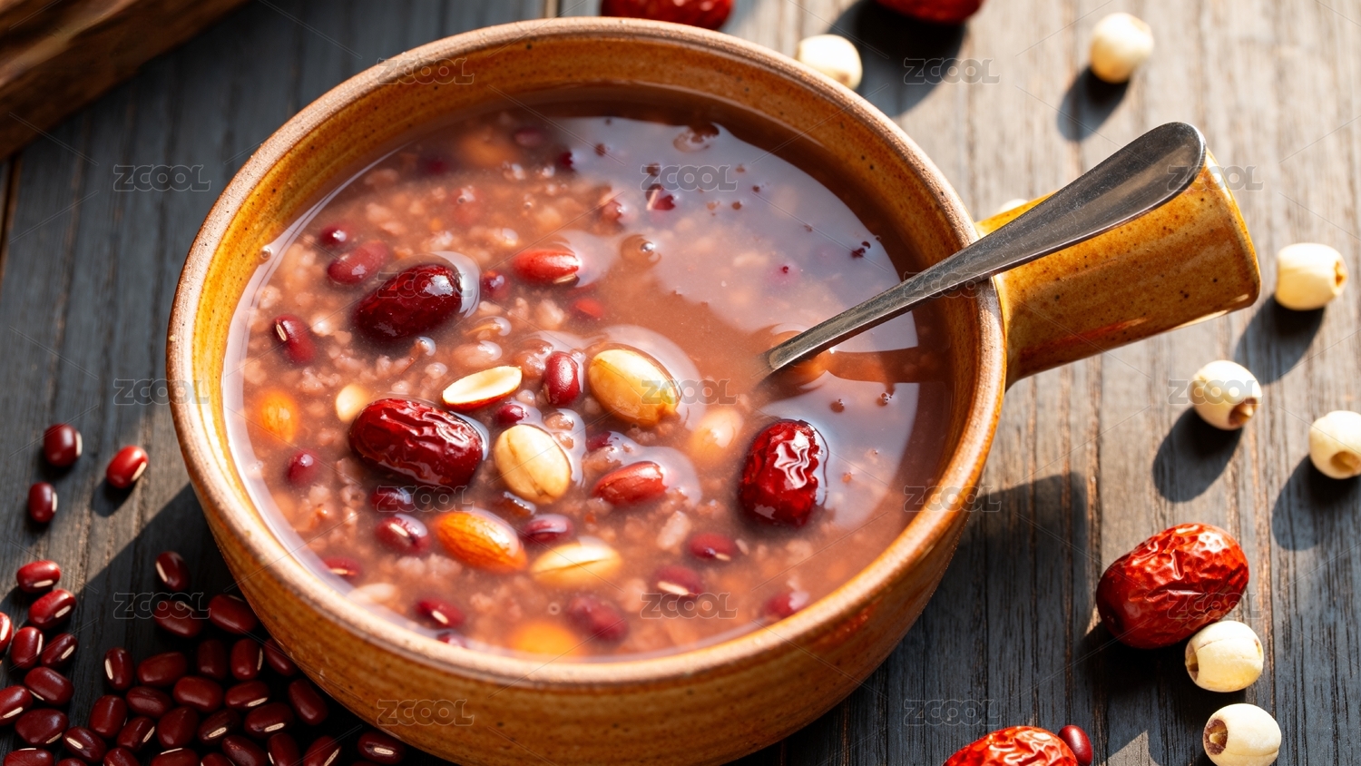 一碗红豆八宝粥配食材