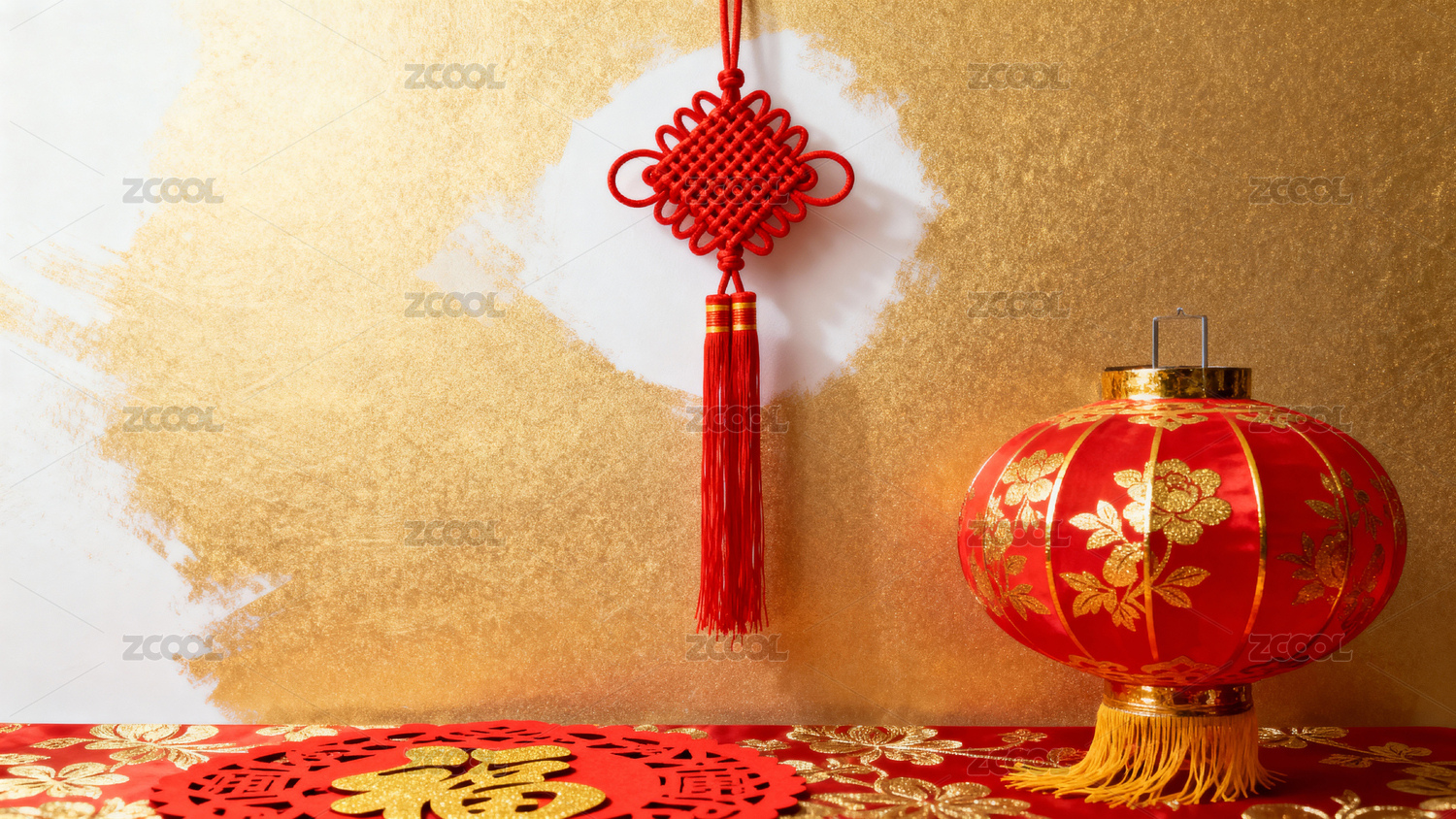 红色灯笼金色花卉装饰