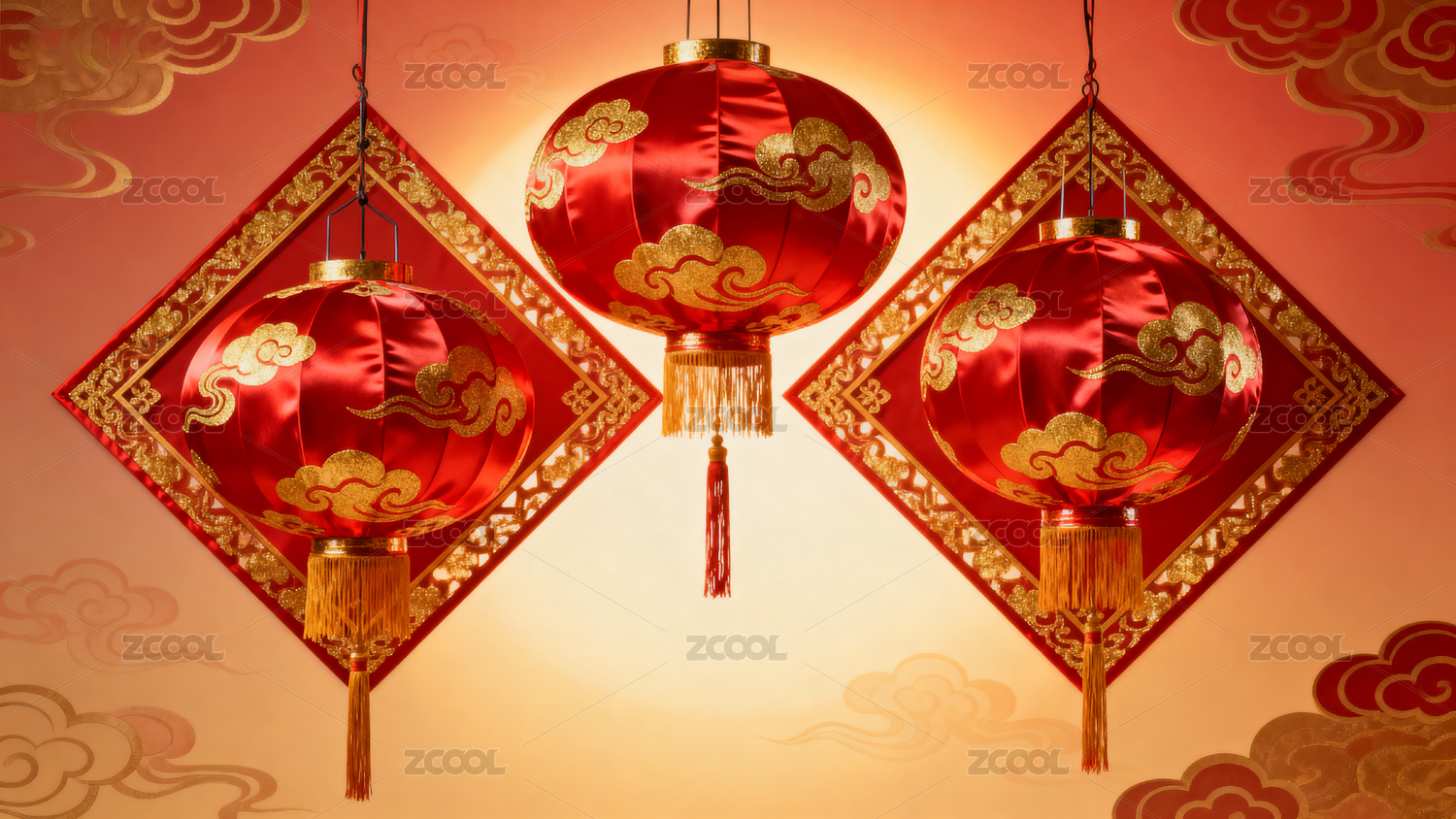 红色灯笼与祥云图案装饰