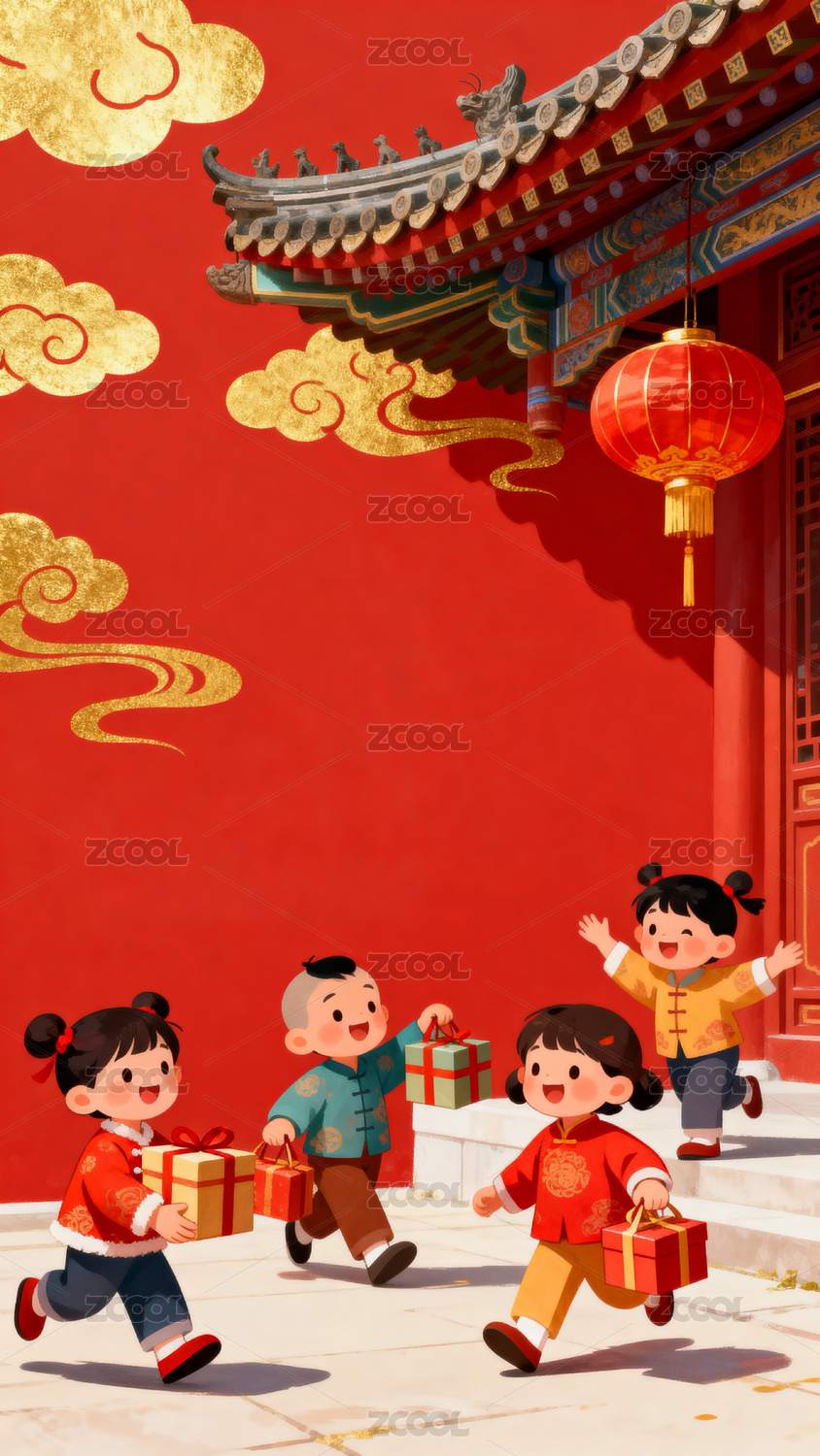 红色,装饰,传统,节日,喜庆,新年,礼物,灯笼,福字,孩子