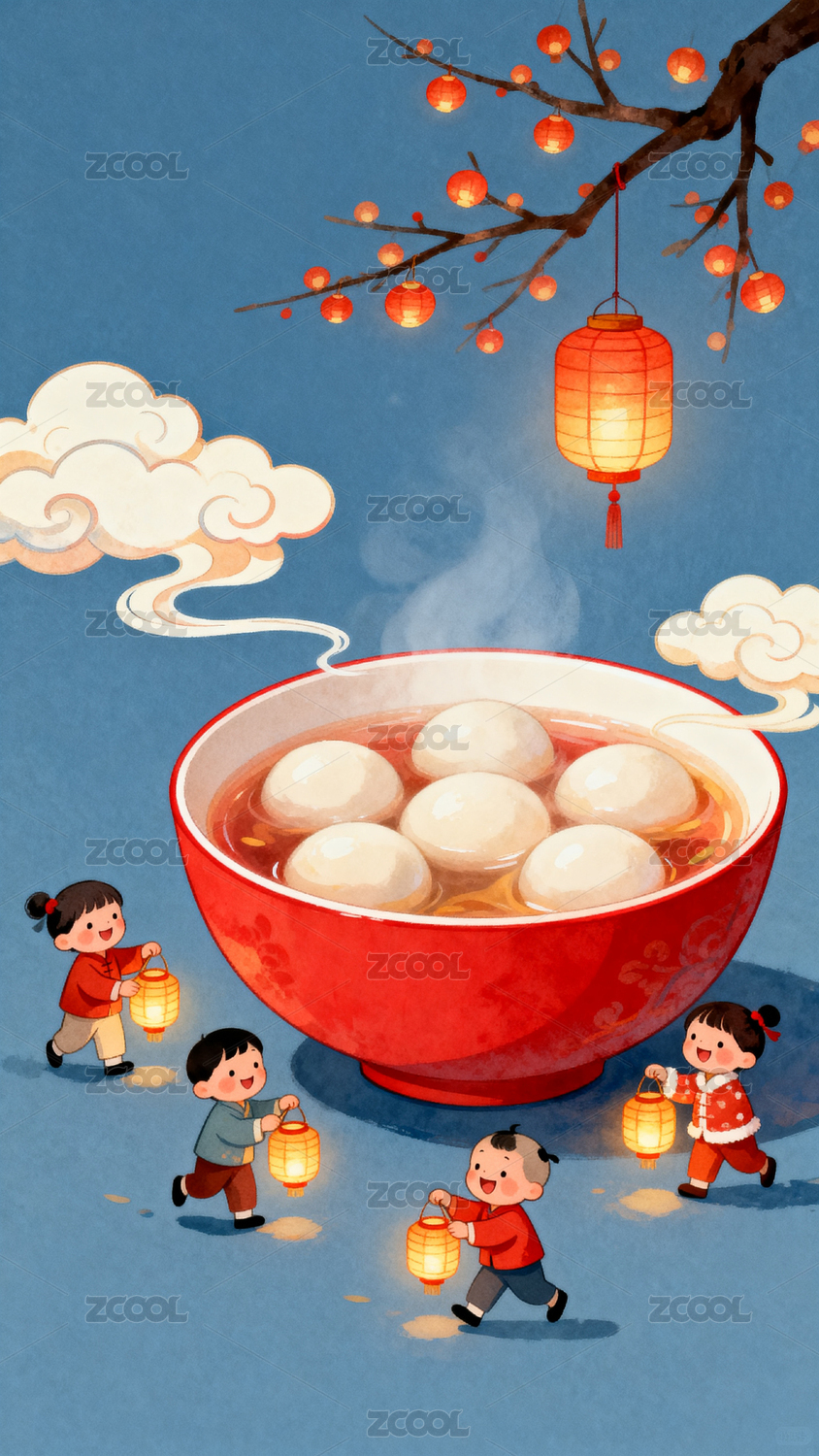 红色,装饰,节日,喜庆,灯笼,孩子,夜空,奔跑,碗,云