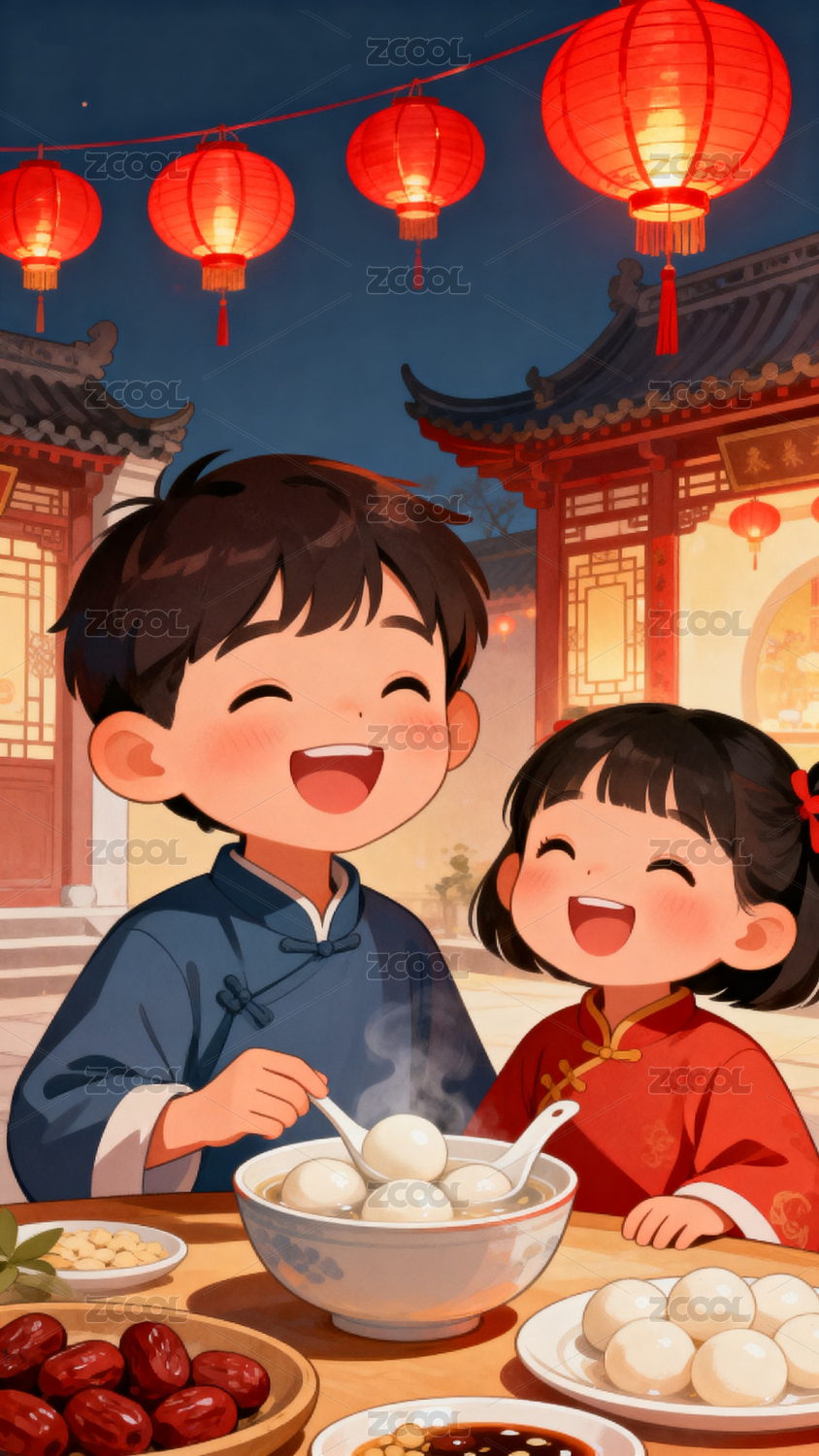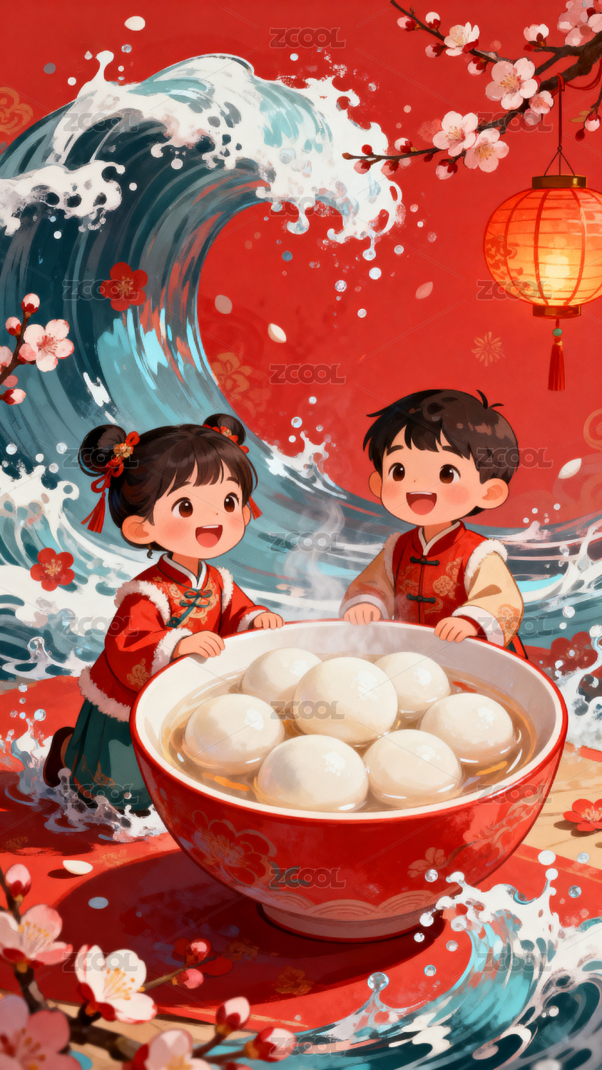 红色,花纹,衣服,装饰,传统,节日,喜庆,灯笼,碗,小孩