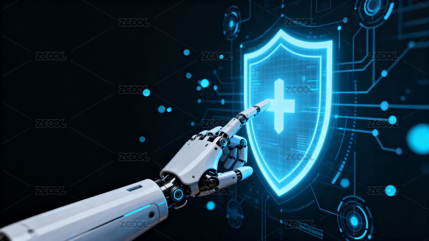 线条,科技,光点,机械手,防护盾,蓝色,电路,未来,触碰,发光