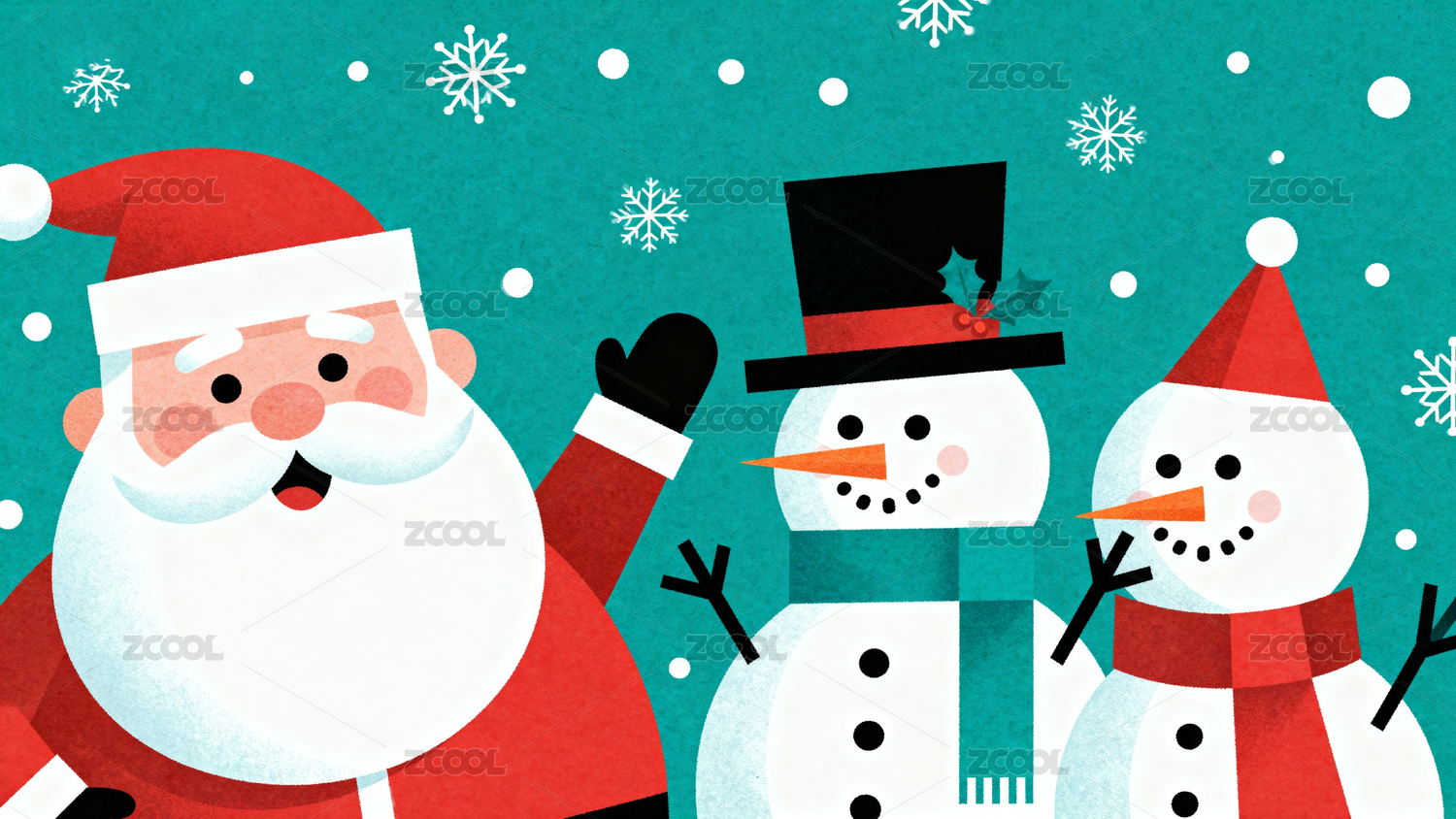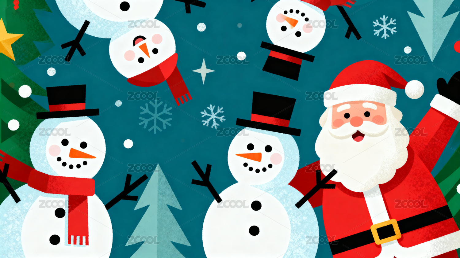 圣诞主题卡通图案包含圣诞老人驯鹿和雪人