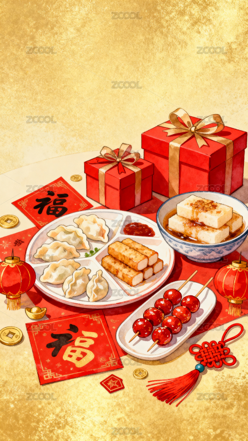 红色,福字,食物,桌面,元宝,金币,装饰,金色,喜庆,礼物