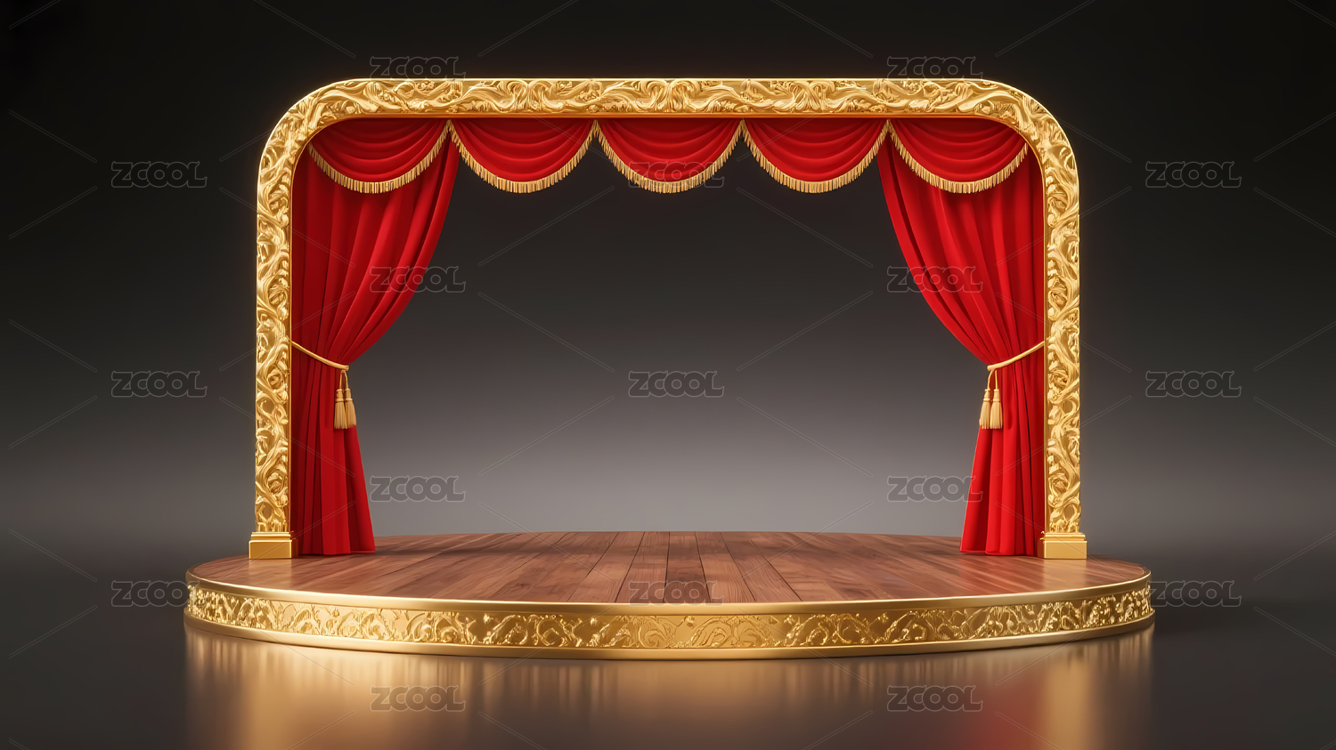 红色,金色,深色,舞台,幕布,圆形,台阶,平台,庄重,典雅