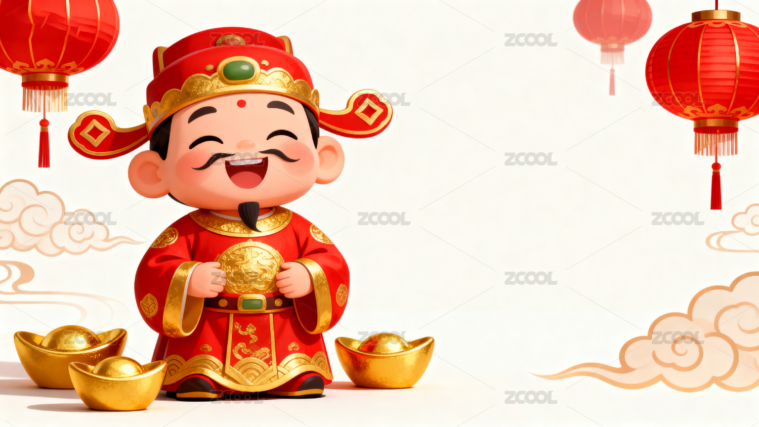 金色,装饰,传统,人物,红色,服饰,节日,喜庆,卡通,财神