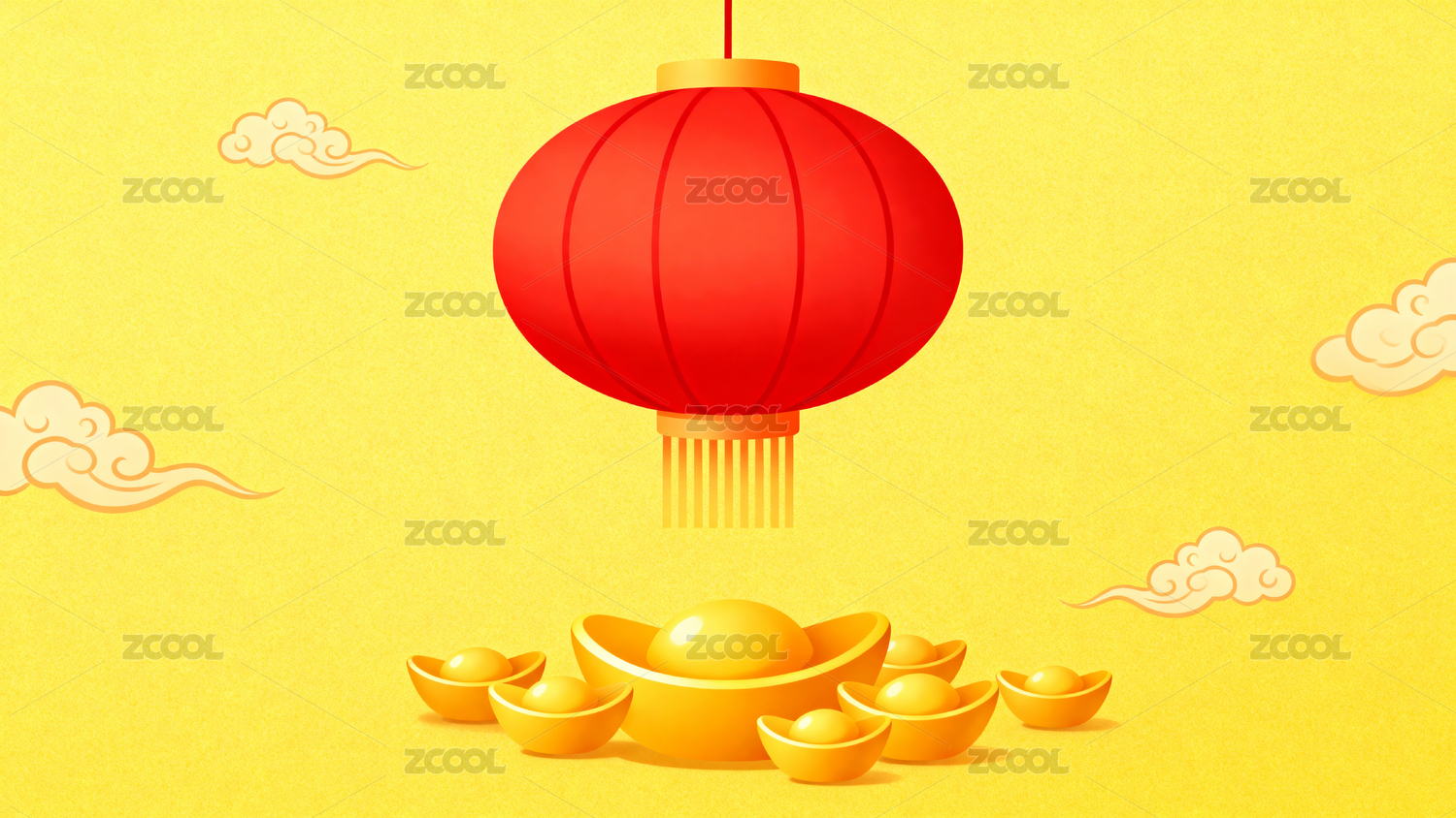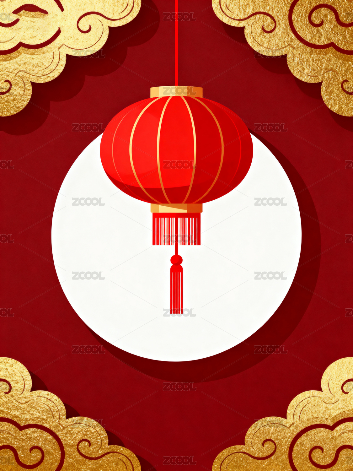 红色背景金色灯笼云纹装饰