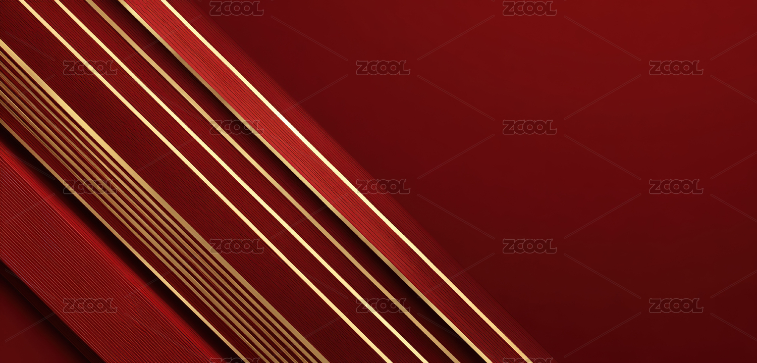 红色几何图案金色线条装饰
