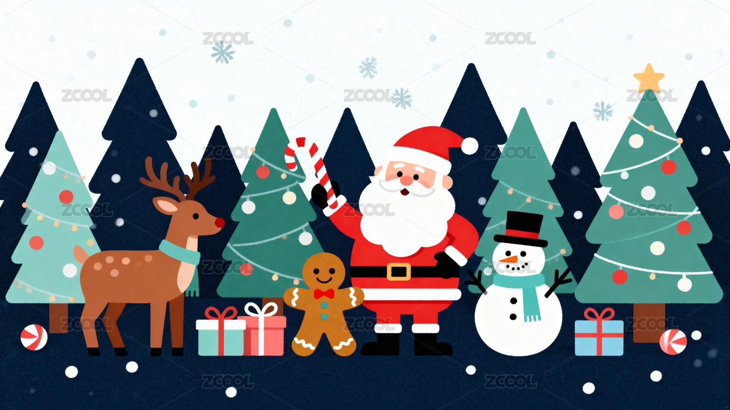 圣诞老人驯鹿雪人姜饼人欢乐场景