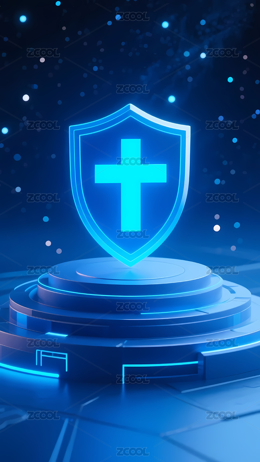 白色,蓝色,深色,光点,科技,盾牌,十字,圆环,光效,保护