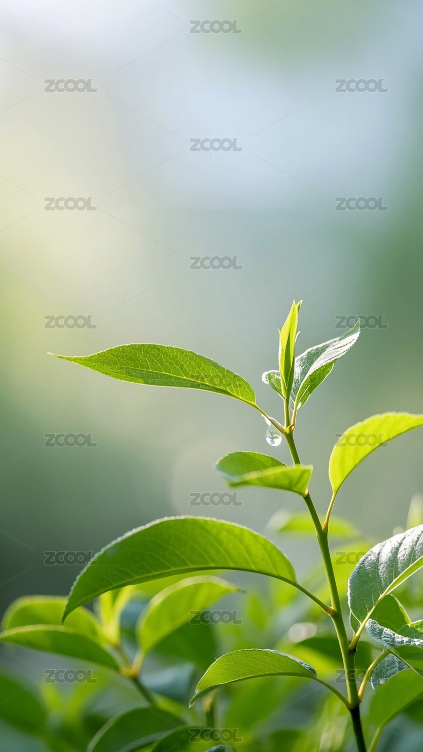宁静,自然,植物,清新,生态,绿植,水珠,叶片,明亮,活力