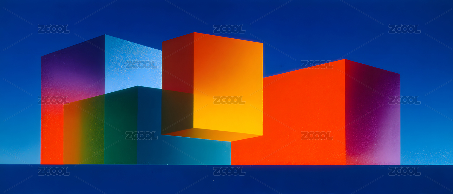 色彩,艺术,现代,简洁,对比,几何,立方体,悬浮,立体,风格