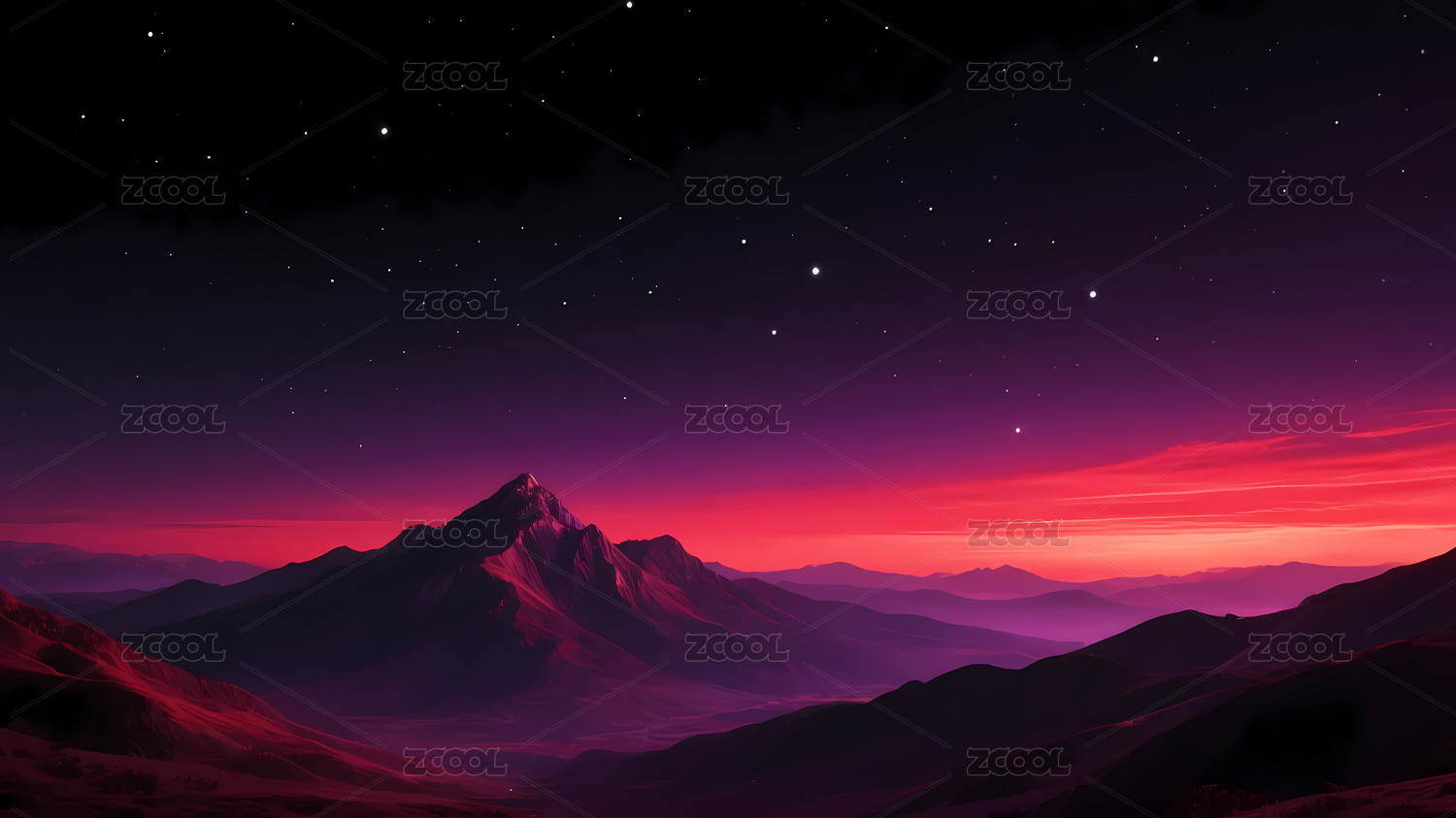 自然,渐变,山脉,蓝色,天空,橙红,霞光,山峦,朦胧,深紫